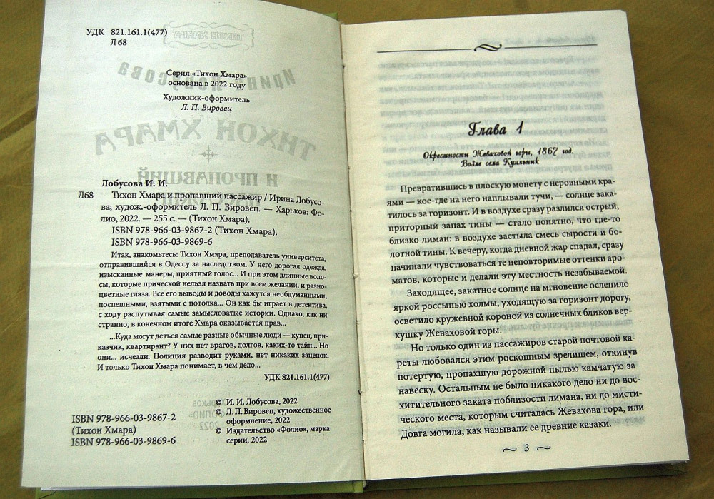Благодаря директору издательства Александру Красовицкому книги продолжают выходить уже в безопасном месте. И буквально недели через две появится моя новая книга, которая была сверстана еще до войны. После 10 февраля вышли две мои книги, «Бухта Святого Причастия» и «Тихон Хмара и пропавший пассажир». Вторая книга как раз открывает новую серию, относящуюся к Одессе девятнадцатого века, действие происходит в 1867 году. Издательство не успело мне прислать авторские экземпляры «Тихона Хмары», и я рада, что у одного из читателей, тем не менее, она уже есть, была в продаже, и за несколько дней раскупили весь тираж… «Бухту Святого Причастия» раскупили за два дня. Для меня приятной неожиданностью стало то, что за время войны спрос на книги даже возрос».