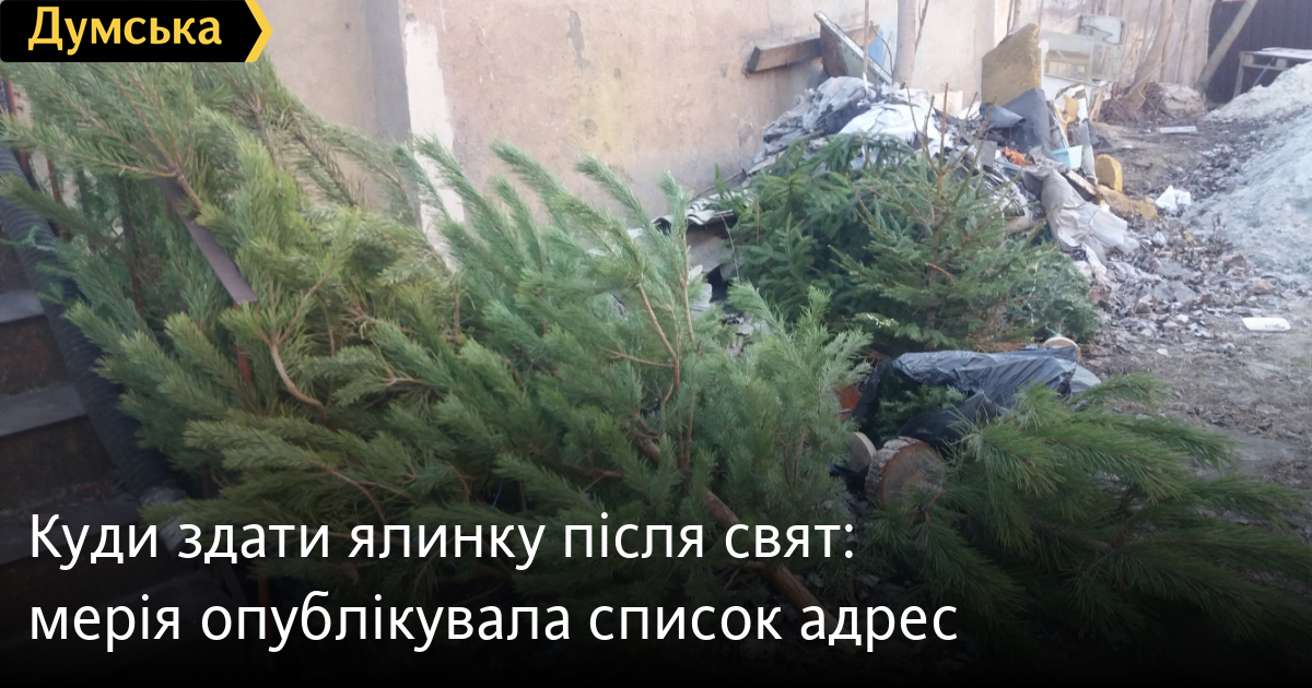 Список адрес, куди можна віднести ялинку після новорічних свят, оприлюднила мерія Одеси. Пункти приймання організовують комунальні ЖКСи та приватні керівні компанії, повідомили в міськраді. КП «ЖКС «Фонтанський» пропонує везти ялинки в такі місця: - вул. Мала Арнаутська, 7; - вул. Велика Арнаутська, 83; - вул. Транспортна, 8а; - проспект Гагаріна, 23/5; - вул. Тираспольська, 13. Пункти прийому КП «ЖКС «Чорноморський»: - просп. Небесної Сотні, 83; - вул. Ак. Корольова, 63/а; - вул. Ільфа і Петрова, 63 корпус 1; - пл. Незалежності, 1; - просп. Ак. Глушка, 1/В. Пункти КП «ЖКС «Вузівський»: - вул. Шишкіна, 52/2А; - вул. Варненська, 5/2; - просп. Небесної Сотні, 4; - вул. Героїв Крут, 3. КП «ЖКС «Хмельницький»: - вул. Балківська, 199; - вул. Середня, 47; - вул. Болгарська, 16; - вул. Богдана Хмельницького, 64. КП «ЖКС «Пересипський»: - вул. Отамана Чепіги, 9; - вул. Далекосхідна, 6. КК «Клевер»: - вул. Висоцького, 20; - вул. Заболотного, 12; - вул. Марсельська, 5; - вул. Лузанівська, 67; - вул. Чорноморського Козацтва, 167.