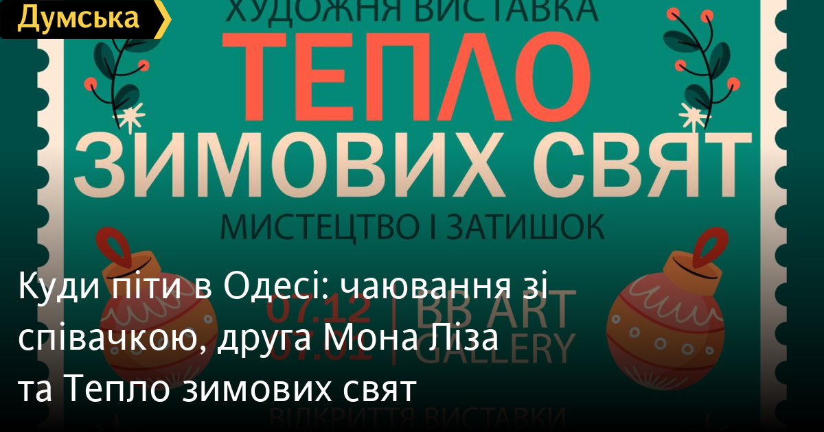 Виставку «Тепло зимових свят» відкриють 7 грудня в BB Art Gallery (Троїцька, 34).