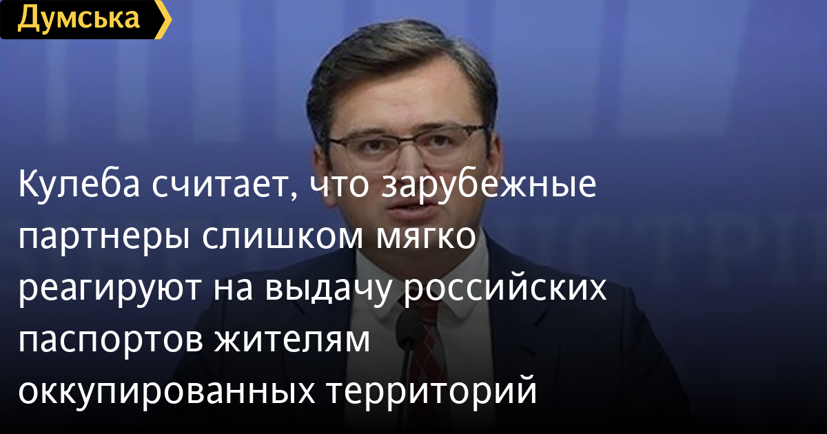 «Я никого не обвиняю. Такова жизнь. Но наши друзья и партнеры не отнеслись к этому с должной серьезностью, когда население оккупированных территорий только начали вынуждать чуть ли не силой получать гражданство РФ. В свою очередь, Россия почувствовала, что ей это сходит с рук, и поставила там «конвейер» по раздаче своих паспортов», — отметил Кулеба.