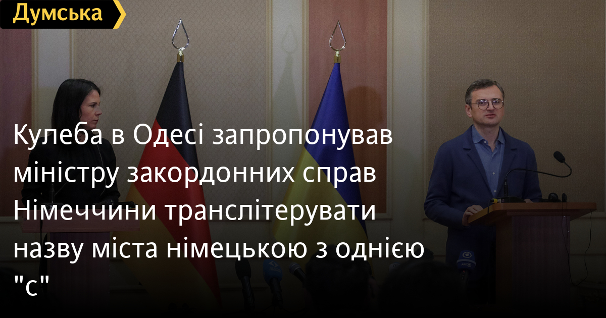 Транслітерувати назву Одеси німецькою мовою з української, з однією літерою «с», запропонував міністр закордонних справ України Дмитро Кулеба колезі з Німеччини Анналені Бербок.