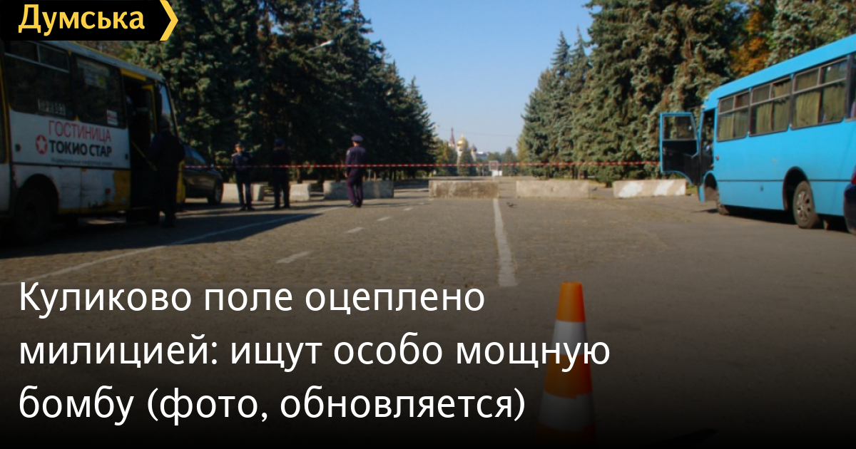Площадь ограждена лентами и оцеплена сотрудниками милиции и бойцами спецназа. На месте также дежурит машина скорой помощи. Судя по всему, на сей раз Куликово поле заминировали сильно-сильно, заложив особо мощное взрывное устройство.
