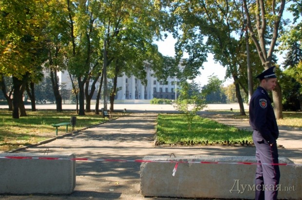Как передает корреспондент «Думской», милиция не только оцепила саму площадь, но и перекрыла движение по окрестным улицам, включая Канатную и Итальянский бульвар. Работники ГАИ пропускают только общественный транспорт, что привело к образованию заторов.