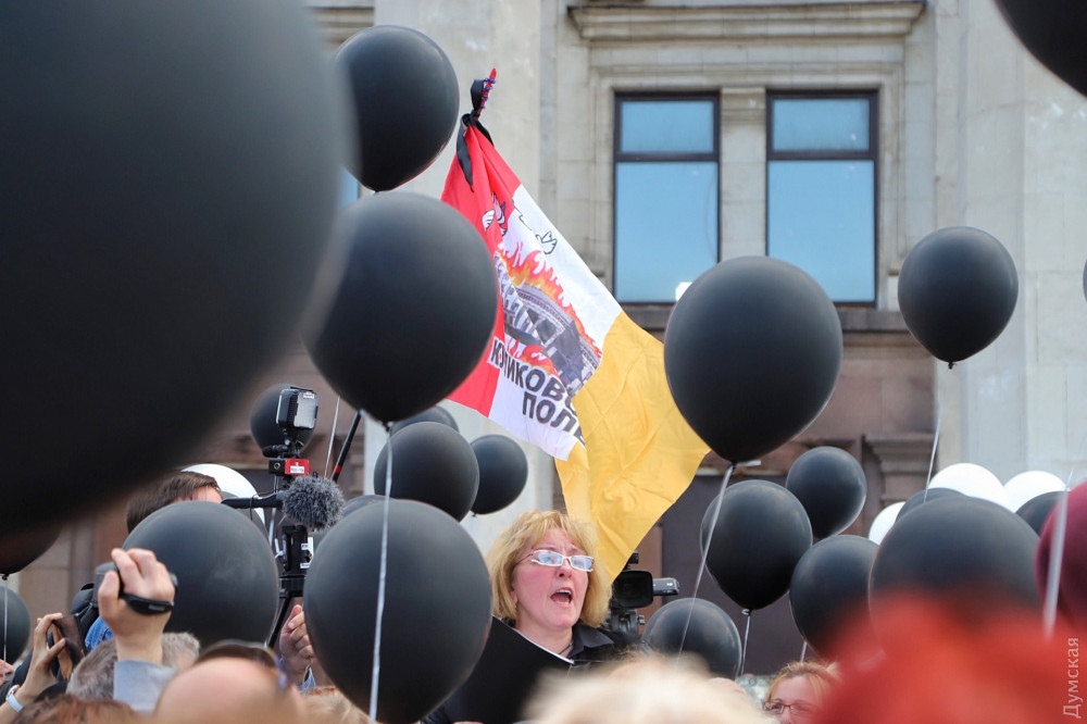 ОБНОВЛЕНО В 17:05. Прошла панихида, после этого начали читать стихи в память о погибших. Изредка из толпы, где находятся представители патриотических организаций, доносятся крики «Слава Украине». В ответ куликовцы начинают скандировать: «Вон из Одессы, бандеровские бесы» и «Одесса — русский город».