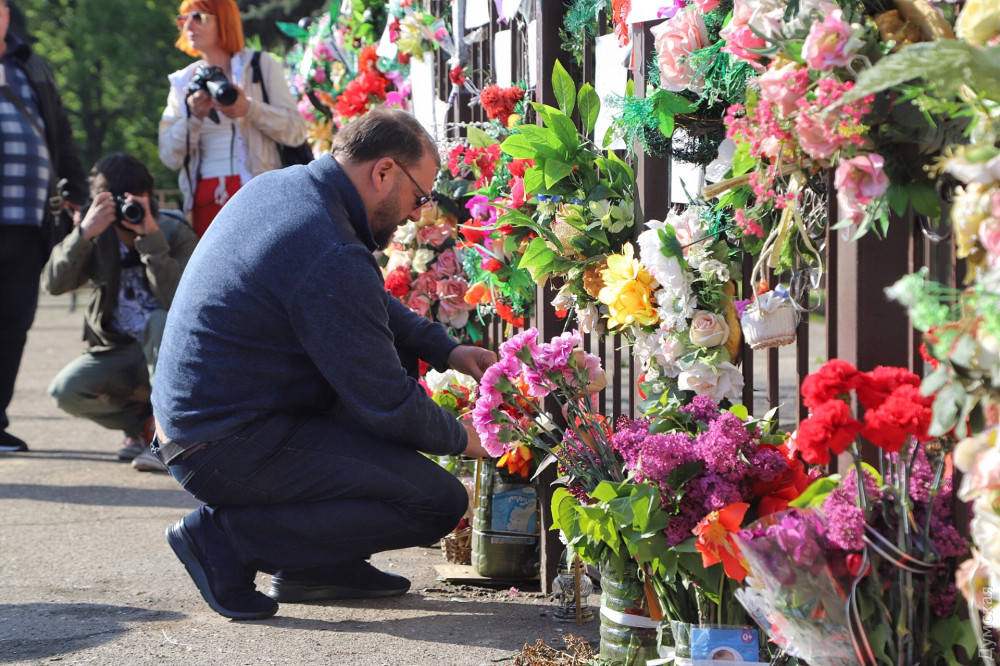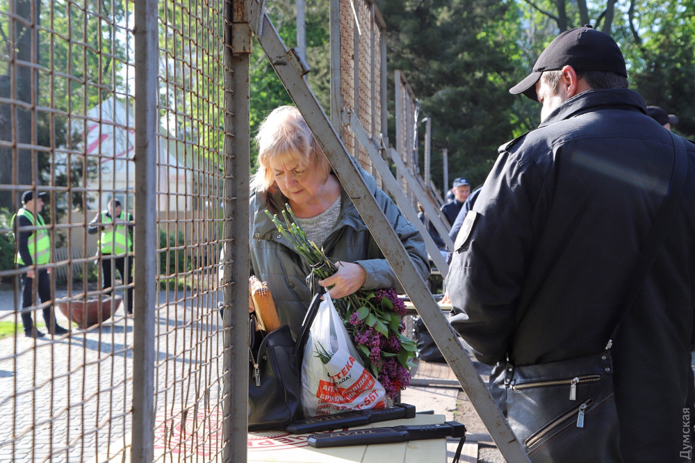 Людей, пришедших почтить память погибших, пропускают свободно, но проверяют металлоискателями. Правда, проход на площадь (фильтрационный пункт) только один.