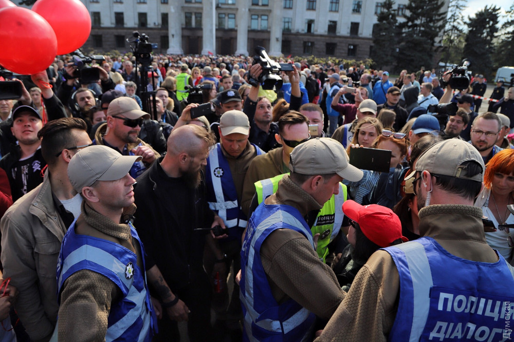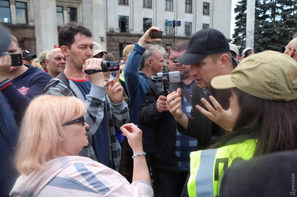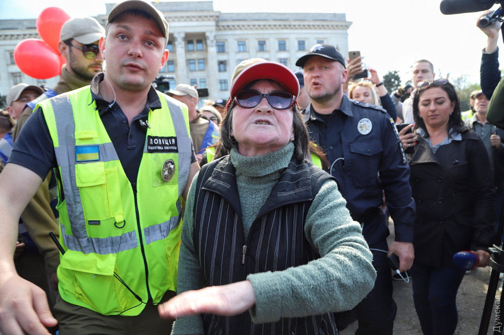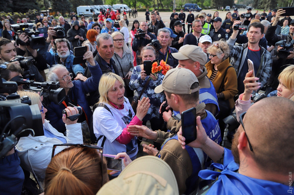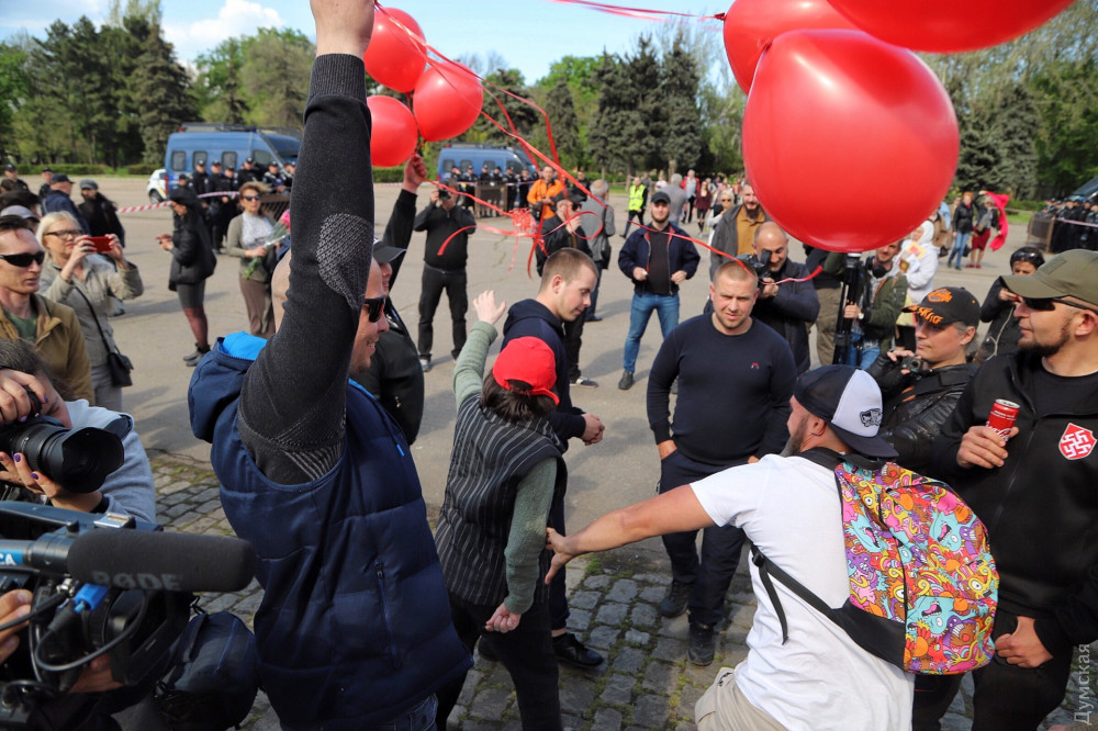 Локальные конфликты пресекает полиция. Женщину, которая прокалывала красные шары маникюрными ножницами, увели. Эта же женщина разбила телефон журналистке, которая вела прямую трансляцию.