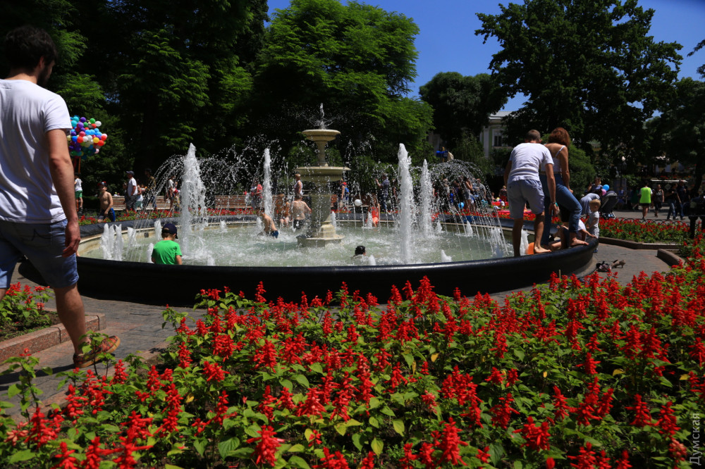 Для виновников торжества специально украсили столбы и скамейки, установили аттракционы и разрешили купаться в фонтане.
