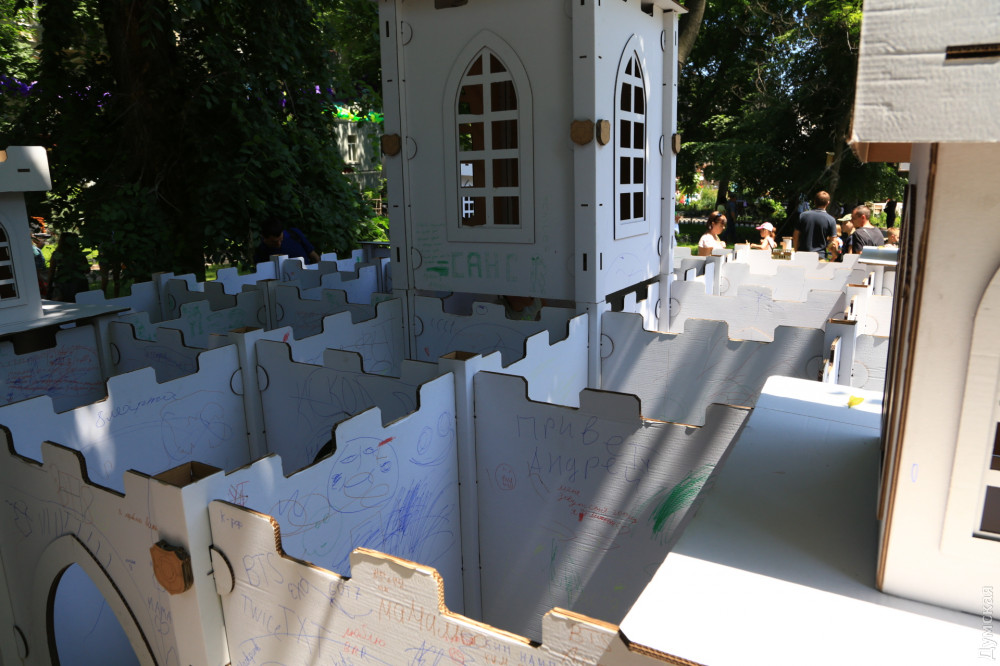 Прямо возле ротонды появилась надувная горка, а рядом всех желающих пускают в лабиринт в форме старинной крепости.
