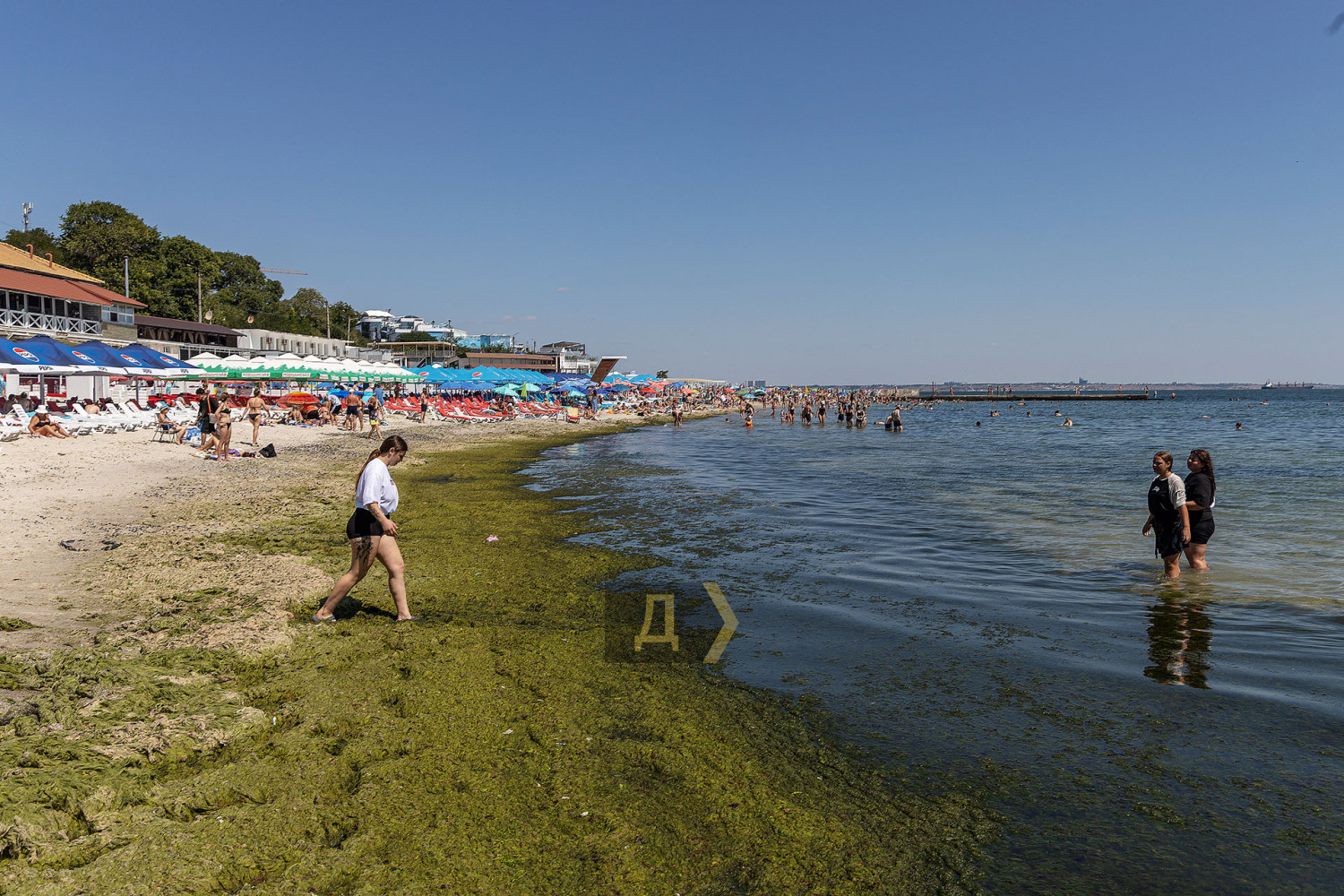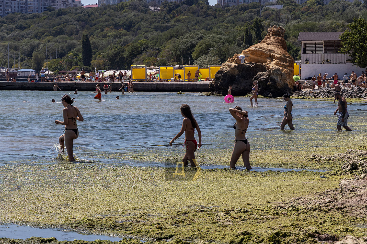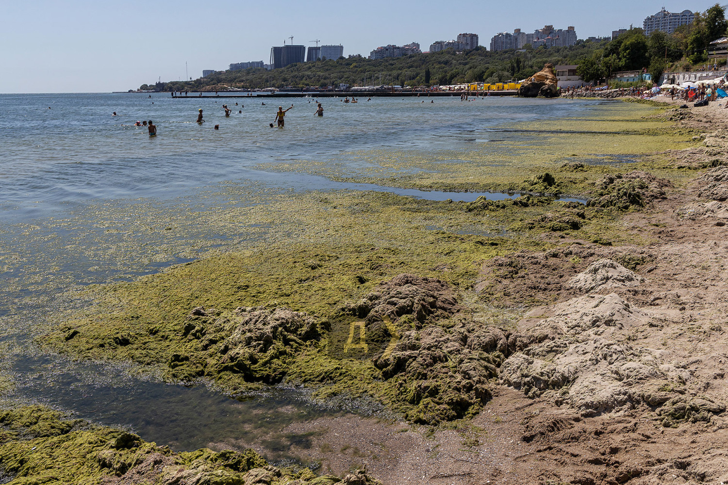 Не сприяє комфортному відпочинку і величезна кількість водоростей, викинута на берег недавнім штормом. Відпочивальникам доводиться прорубувати собі в зеленому місиві прохід на глибину.