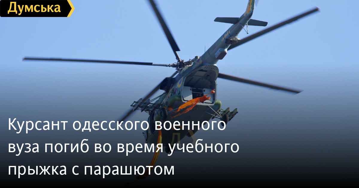 Курсант одеського військового вишу загинув під час навчального стрибка з парашутомПід час навчального стрибка із парашутом загинув курсант одеського військового вишу. 20-річний одесит Дмитро Х. навчався на факультеті підготовки спеціалістів військової розвідки та Сил спеціальних операцій, повідомляє кореспондент «Думської». Трагедія сталася у повітрі після того, як курсант покинув вертоліт. Державне бюро розслідувань проводить слідчі дії. СМЕРТЬ РОСІЙСЬКИМ ОКУПАНТАМ! Помітили помилку? Виділяйте слова з помилкою та натискайте control-enter |