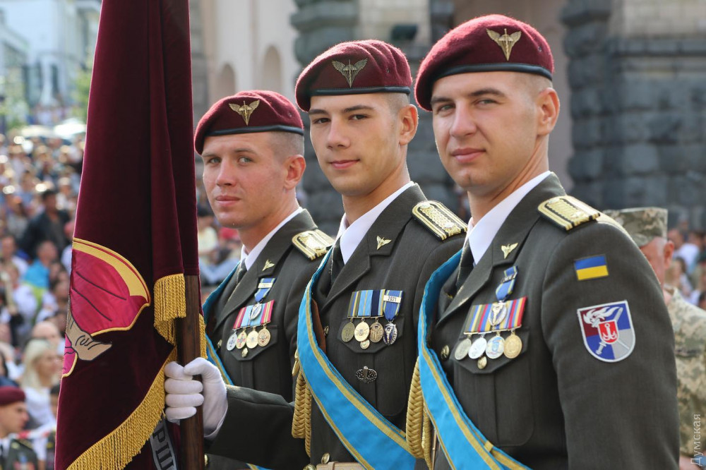 Военную академию Одессы представляли сразу два парадных расчета. Будущих офицеров десантно-штурмовых войск вел заместитель начальника факультета ДШВ подполковник Сергей Миронюк. В строю было 18 участников российско-украинской войны.