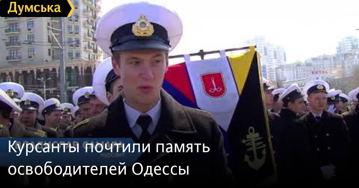 Чеканным шагом, под звуки оркестра и барабанную дробь. Почтить память освободителей Одессы вышли и курсанты мореходного колледжа технического флота Национального Университета Одесской Морской академии