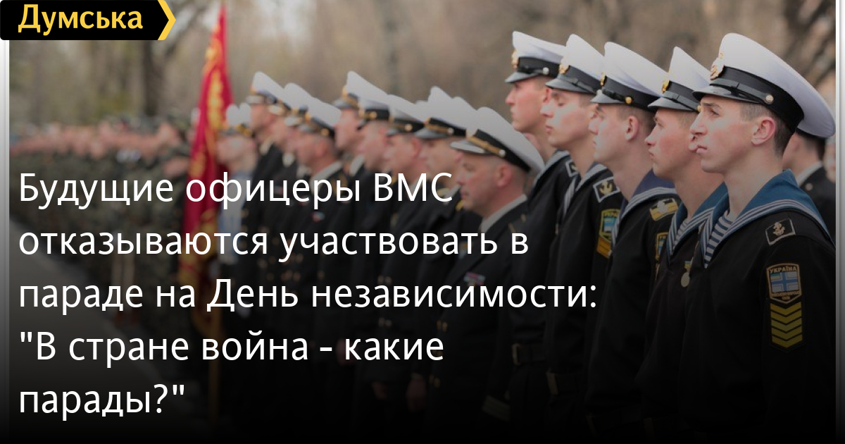 Курсанты военно-морского факультета Одесской национальной морской академии — те самые которые пели гимн Украины в оккупированном Крыму — просят не отправлять их в Киев на военный парад в честь Дня независимости Украины.