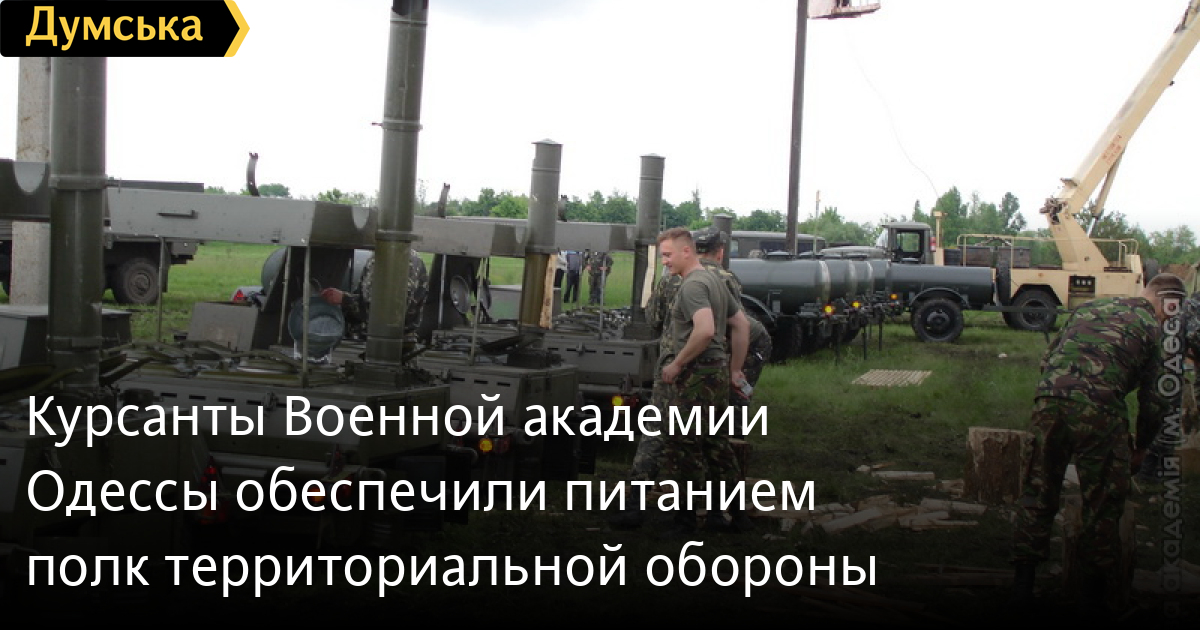 Группа курсантов Военной академии Одессы в течение недели, опередив установленные сроки, развернула и ввела в действие полевой пункт питания для личного состава N-ского полка территориальной обороны, который формируется в одной из областей Украины.