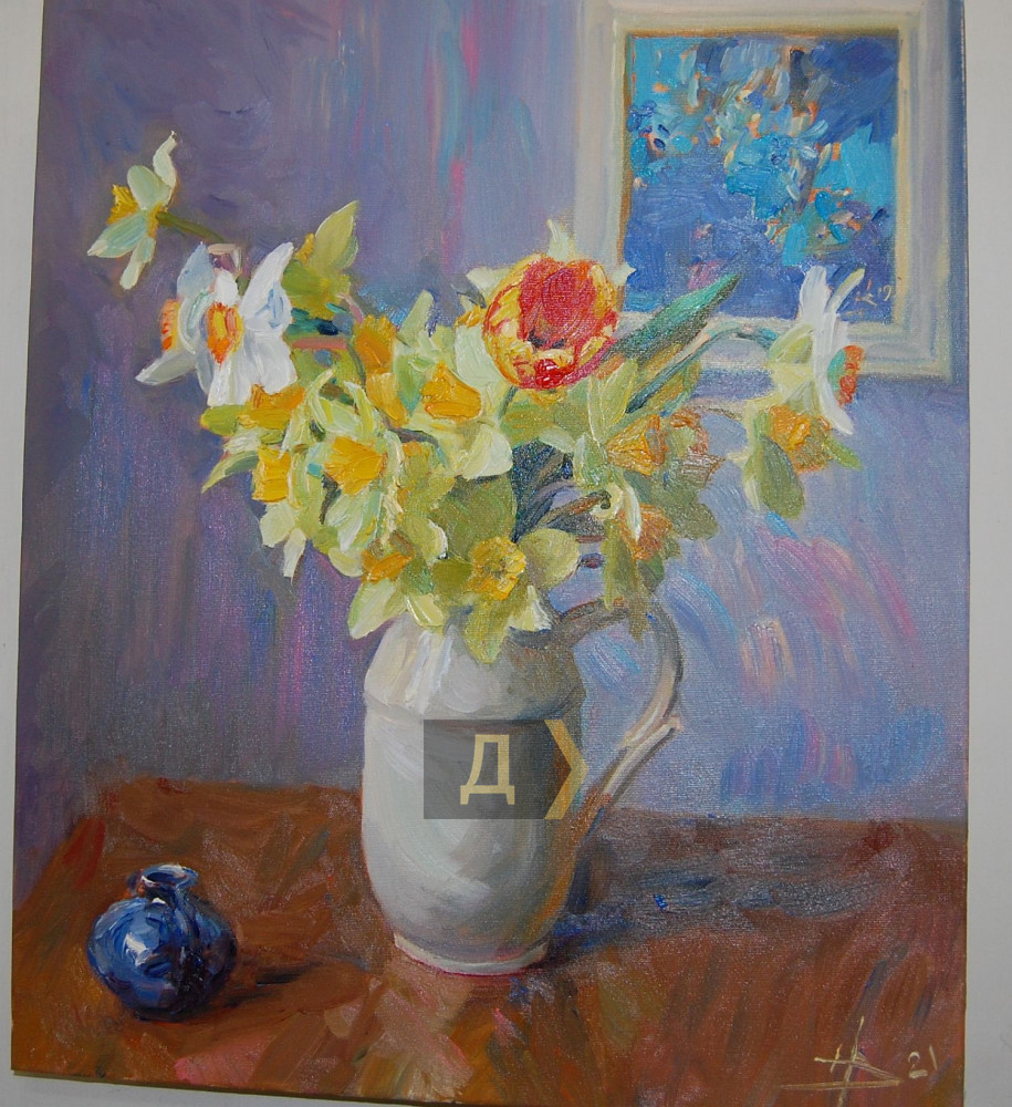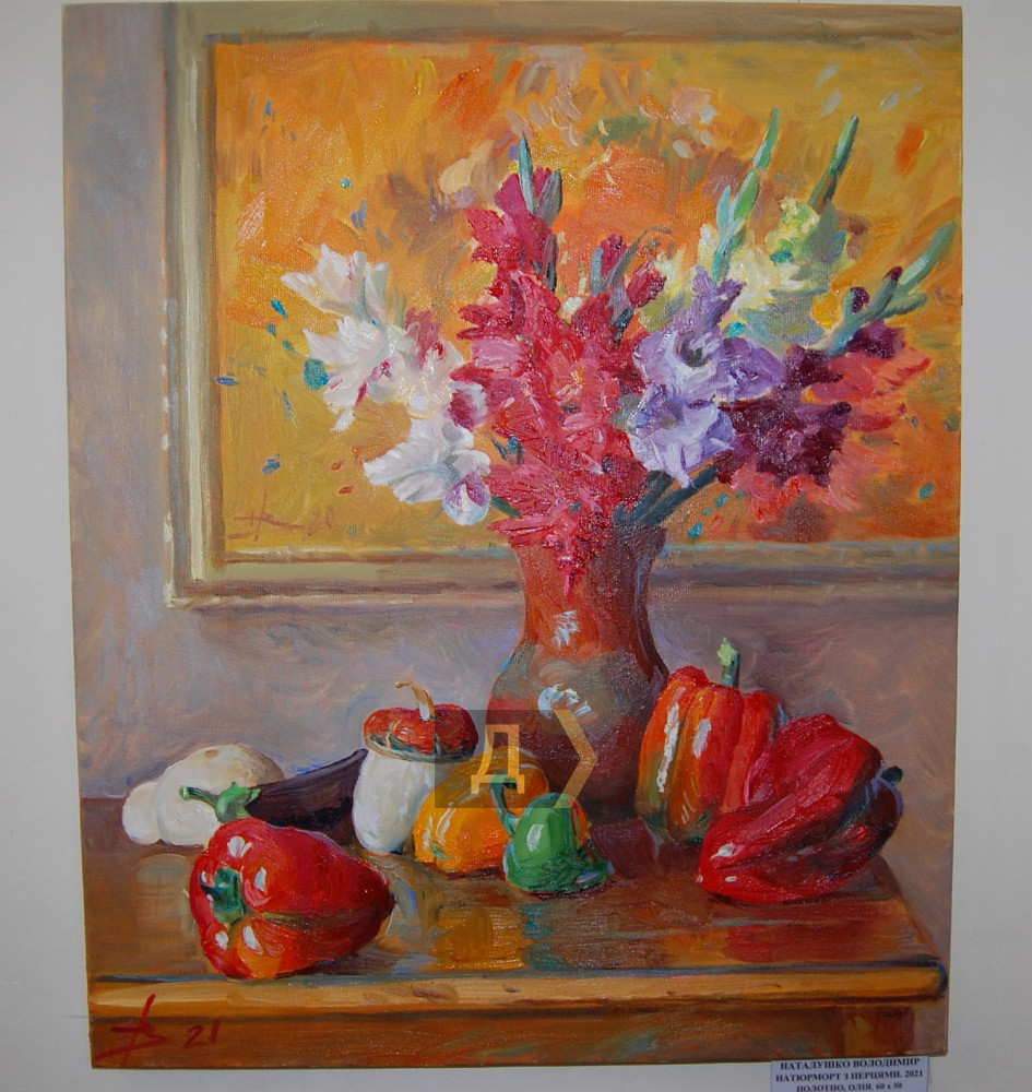 «Не дивлячись на всі трагічні події, треба творити, нести позитив, — каже Володимир. — Тому у мене переважають квіти, натюрморти».