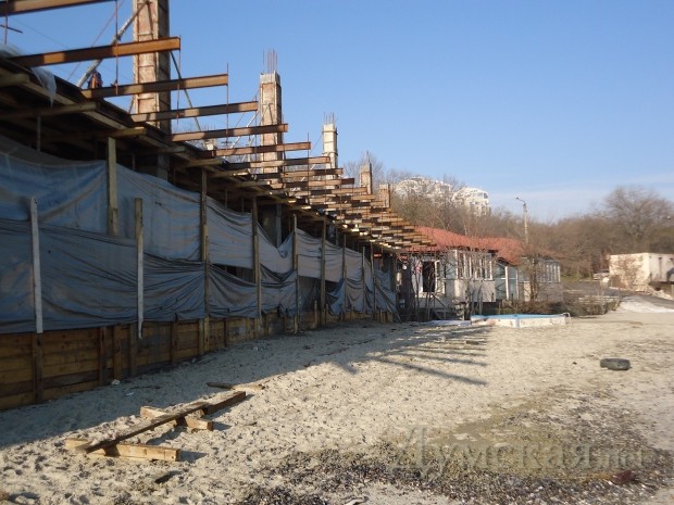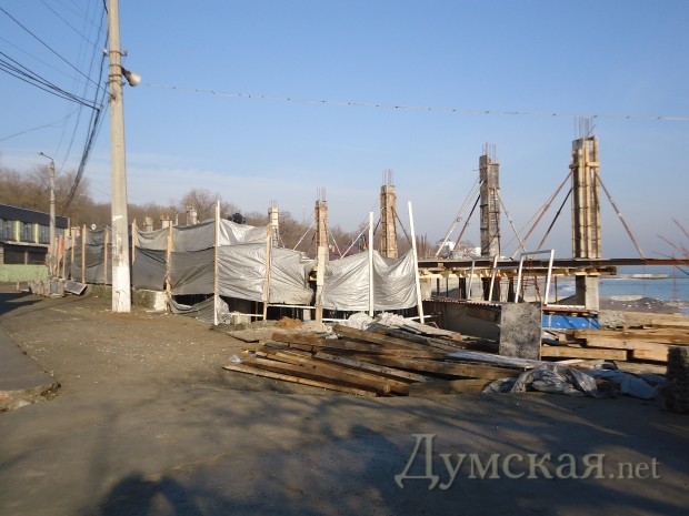 В начале декабря, когда на пляже только появился бетонный фундамент, КП «Ланжерон» заверяло, что строительство ведется абсолютно законно. Однако теперь в мэрии называют сооружение «нахалстроем».