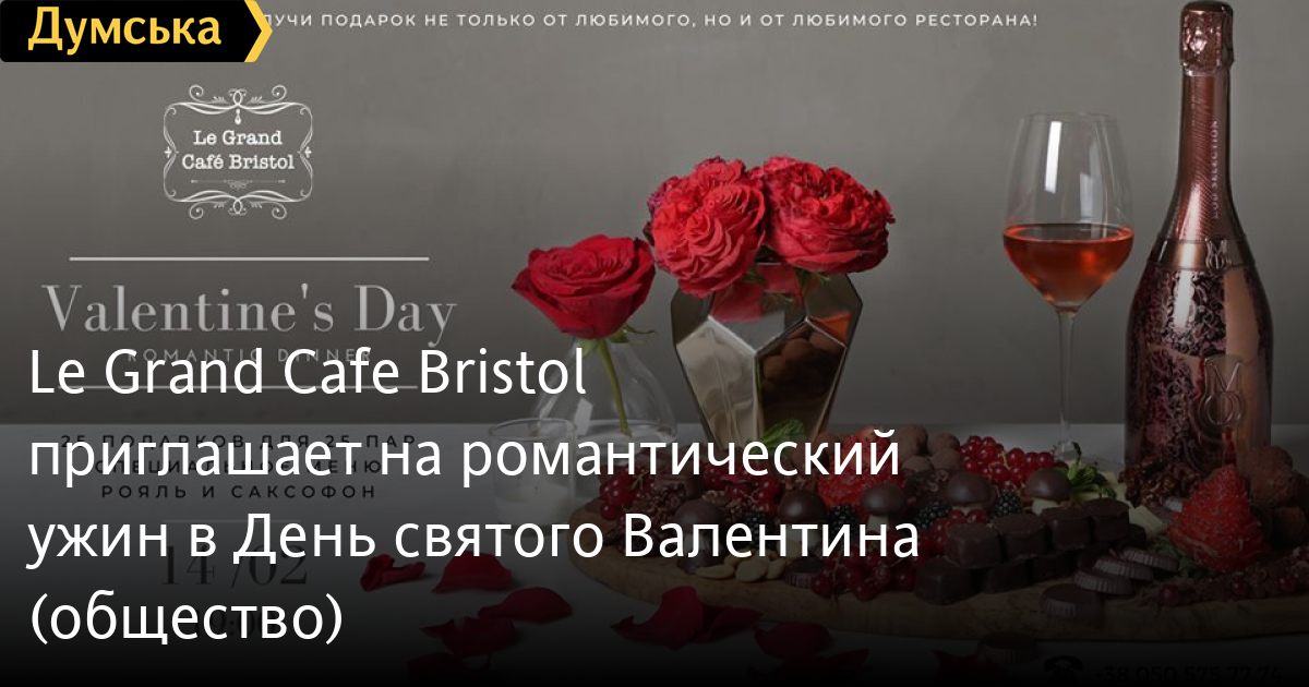 Le Grand Cafe Bristol приглашает на романтический ужин в День святого Валентина (общество)14 февраля, в День святого Валентина, Le Grand Cafe Bristol превратится в маленький островок любви. 25 влюбленных пар смогут насладиться романтической атмосферой и изысканными блюдами, и получить подарки от ресторана. «Гостей ожидает живая музыка и море свечей, специальное меню и коктейли, и 25 подарков для влюбленных», — рассказали в Le Grand Cafe Bristol. Бронь столов по телефону: +38 050 575 77 74. СМЕРТЬ РОССИЙСКИМ ОККУПАНТАМ! Заметили ошибку? Выделяйте слова с ошибкой и нажимайте control-enter |