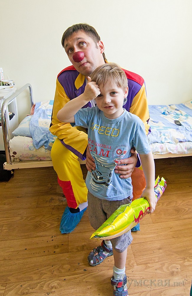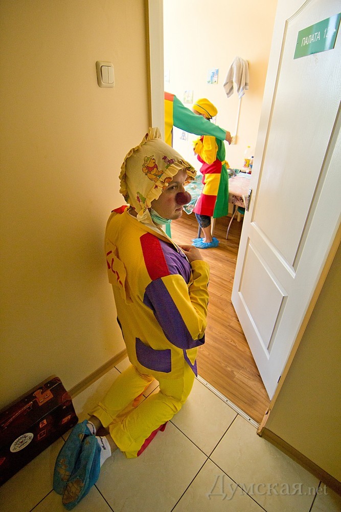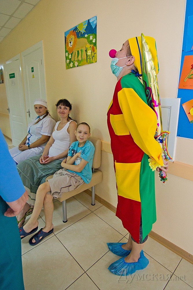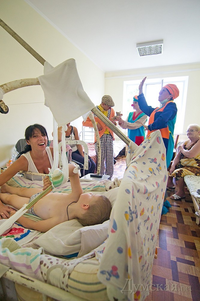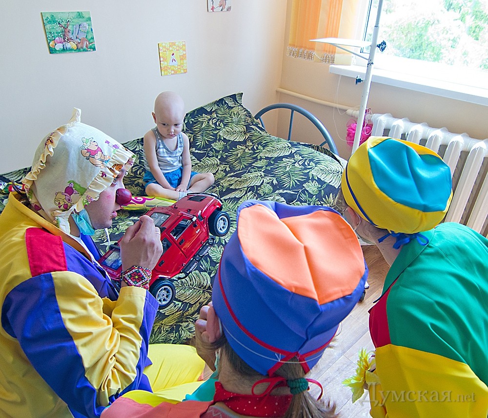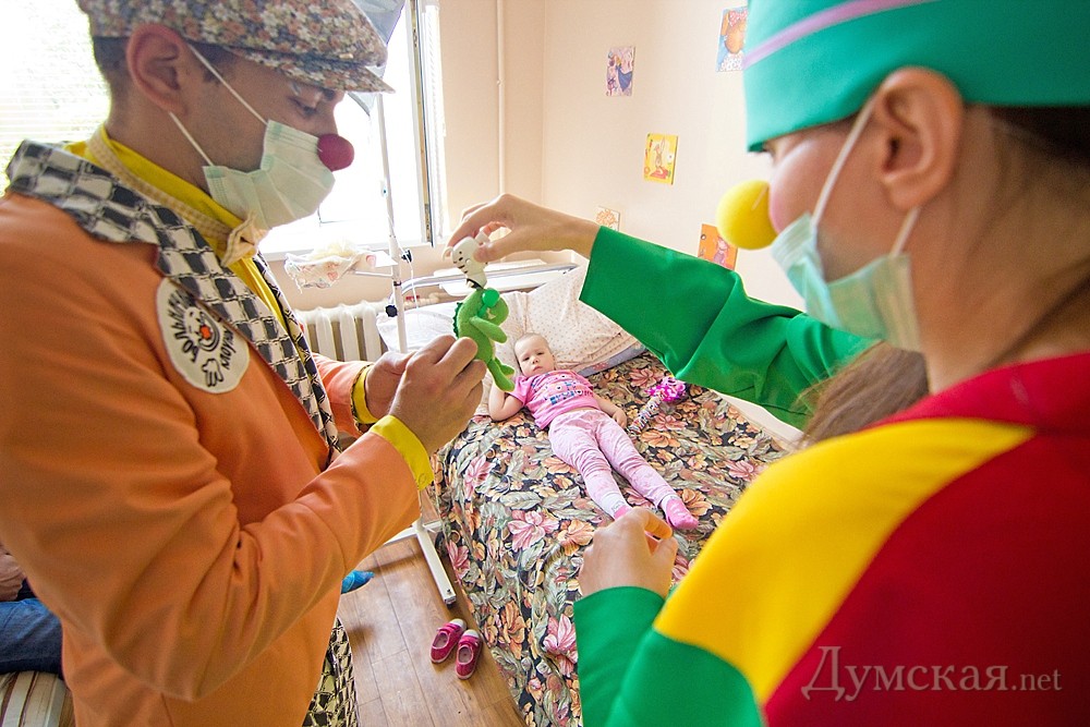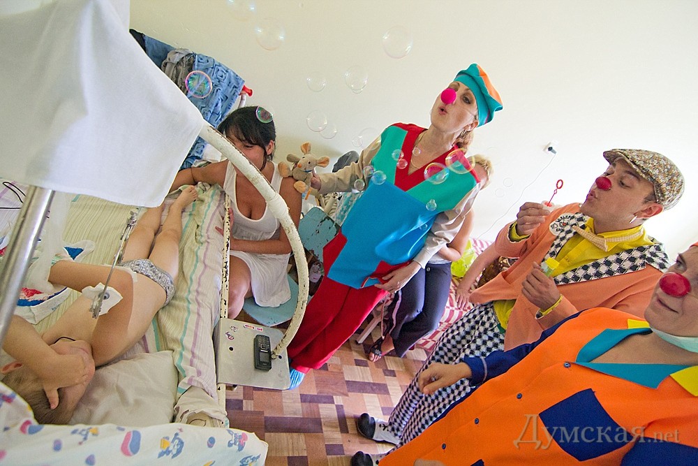 Почти 30 лет назад в Нью-Йорке несколько клоунов из труппы Big Apple Circus робко постучались в дверь детской палаты, чтобы своим талантом и жизнерадостностью привнести в больничные стены надежду на выздоровление. Яркие костюмы и смешные трюки цирковых клоунов сделали свое дело и через полчаса стерильные помещения онкологии услышали то, чего, пожалуй, не слышали никогда – детский смех. С тех пор волонтерское движение больничной клоунады стало распространяться по всему миру, и сегодня количество подобных организаций приближается к трем десяткам. Большинство из них со временем стали профессиональными объединениями. Это и Big Apple Circus«Clowncare» в США, и ClownDoctors в Великобритании, и La Rire Midicine во Франции, и «Больничные клоуны» в России. Во Львове с 2008 года работает труппа фонда «Доктор-клоун». В Одессе первые шаги в больничной клоунаде, а точнее — в организации работы подобного проекта, сделала инициативная группа молодых людей ЛП 118 и агентство «Развитие». Как рассказал «Думской» один из организаторов Сергей Рудюк, идея создать в Одессе волонтерское движение больничных клоунов созрело как очередной шаг общественной работы молодежной организации. Молодые люди уже давно оказывают за собственные средства посильную помощь Одесской областной детской клинической больнице: заканчивают установку небольшой детской площадки, договорились со студентами «Грековки» о росписи бетонного забора. «Несколько раз мы нанимали деткам клоунов и аниматоров, а потом узнали о движении «Больничный клоун» и решили создать в Одессе подобное движение, — рассказывает Сергей. — Движение, которое объединило бы неравнодушных людей с профессионалами больничной клоунады для работы в медицинских учреждениях на постоянной основе». На собранные средства молодые люди пригласили из Москвы основоположника российского движения больничной клоунады Константина Седова и его коллегу Вадима Ларченко — организовать мастер-класс для тех, кто решится связать свою жизнь с такой веселой и одновременно грустной профессией. Преподаватель школы больничных клоунов, выпускник студии МХАТа Вадим Ларченко поведал нам, в чем, на самом деле, состоит работа больничного клоуна, чем она отличается от труда коверного паяца. «К сожалению, мы не можем обучать всех. Для того, чтобы научить человека всем азам театральной профессии, понадобилось бы несколько лет, — говорит Вадим. — К нам приходят выпускники актерских вузов, молодые режиссеры, музыканты, которые уже что-то умеют. Мы их просто слегка перепрофилируем и рассказываем об особенностях работы в больнице. Но, что самое главное, школа повышает мотивацию, чтобы человек воспринял больничную клоунаду как свою профессию, чтобы клоуны ходили к детям регулярно. На это есть спрос как со стороны больниц, так и в первую очередь со стороны детей». Цель этой клоунады — не просто рассмешить, а вывести из глубокого эмоционального кризиса, принести реальную пользу тяжелобольным ребятишкам, которые проводят на больничной койке многие месяцы, а порой и годы. «В этом случае очень важно, чтобы детей, лишенных детства и обреченных на регулярные и не всегда приятные процедуры, окружал тот мир, к которому они привыкли, когда были здоровы: мир детства, мир двора, дружбы, счастливых родителей, — продолжает Вадим. — Если ребенок плачет и в депрессии не хочет е