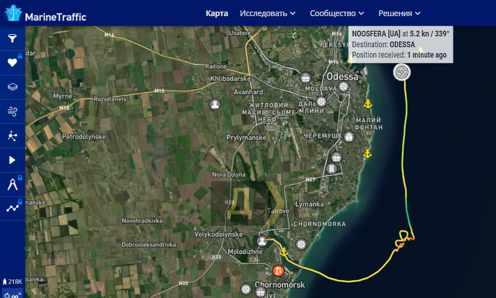 В 12:30 судно вышло из черноморского порта, взяв курс в открытое море, где экипаж провел испытания нового оборудования, передает корреспондент «Думской».