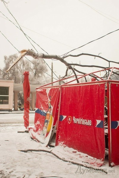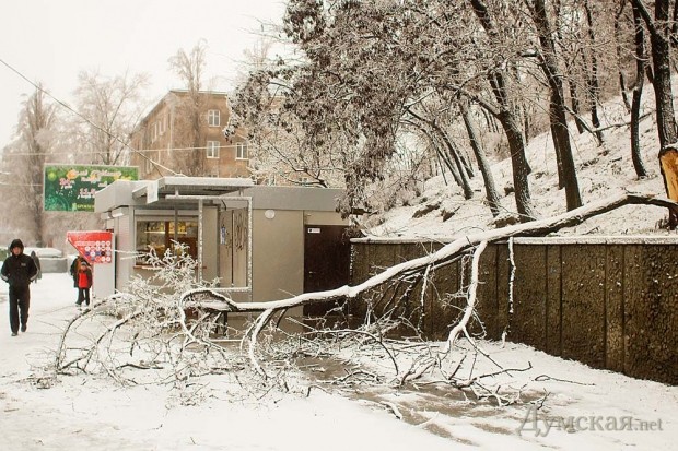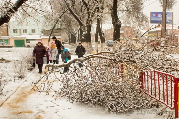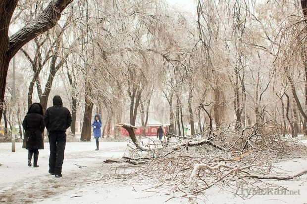 Многие горожане, не дождавшись транспорта, идут на работу пешком. Работники «Горзелентреста» уже принялись расчищать завалы из веток. К примеру, двое коммунальщиков были замечены на Старосенной площади.