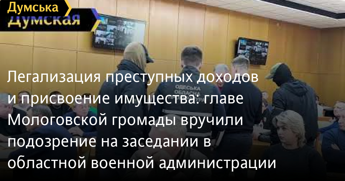 Легалізація злочинних доходів і привласнення майна: голові Мологівської громади вручили підозру на засіданні в обласній військовій адміністрації (фото, відео)Голові Мологівської сільської ради Білгород-Дністровського району Олегу Німачуку вручили підозру просто на засіданні робочої групи «Прозорість і Підзвітність», що проходило в Одеській обласній військовій адміністрації. Як повідомило «Думській» власне джерело, правоохоронці перервали нараду і вивели підозрюваного для проведення слідчих дій. Німачуку інкримінують 191 і 209 статті Кримінального кодексу України. Цікаво, що просто перед появою силовиків голова ОВА Олег Кіпер обговорював процеси, які відбуваються навколо державних земель запасу. «Я чую про тенденцію, коли хтось намагається збанкрутувати і навісити боргові зобов'язання, щоб потім за безцінь викупити, — зазначив Кіпер. — Можливо, це робиться під закон про ринок землі. Найкраще, якщо вони використовували в законному полі, і наскільки я знаю, зараз напрацьовується, щоб цю землю передати до Фонду держмайна. Краще ми будемо її видавати підприємствам на законних підставах, платити податки і зарплати». Після цього губернатор передав слово заступникові прокурора області, який і озвучив претензії правоохоронців до Німачука. СМЕРТЬ РОСІЙСЬКИМ ОКУПАНТАМ! Помітили помилку? Виділяйте слова з помилкою та натискайте control-enter |