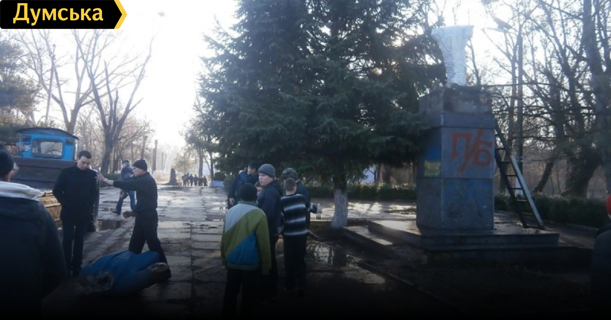 Сняли бы, в своё время, как в Одессе, не было бы никаких (опять) "вандалов". И вообще, термин "вандалы" здесь абсолютно не уместен. Вот если бы они развалили, например, оперный театр, тогда да — вандалы. Разрушили надгробные памятники — вандалы. А так, убрали гипсовую фигуру, какие же это вандалы?