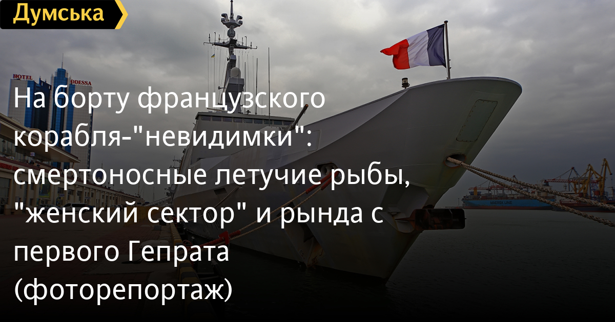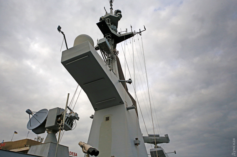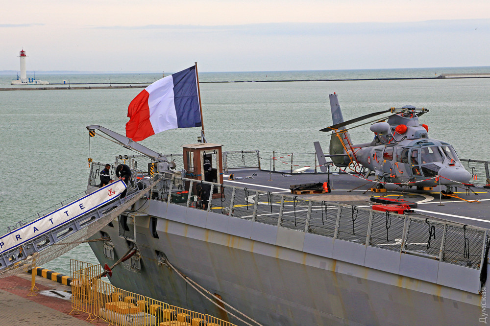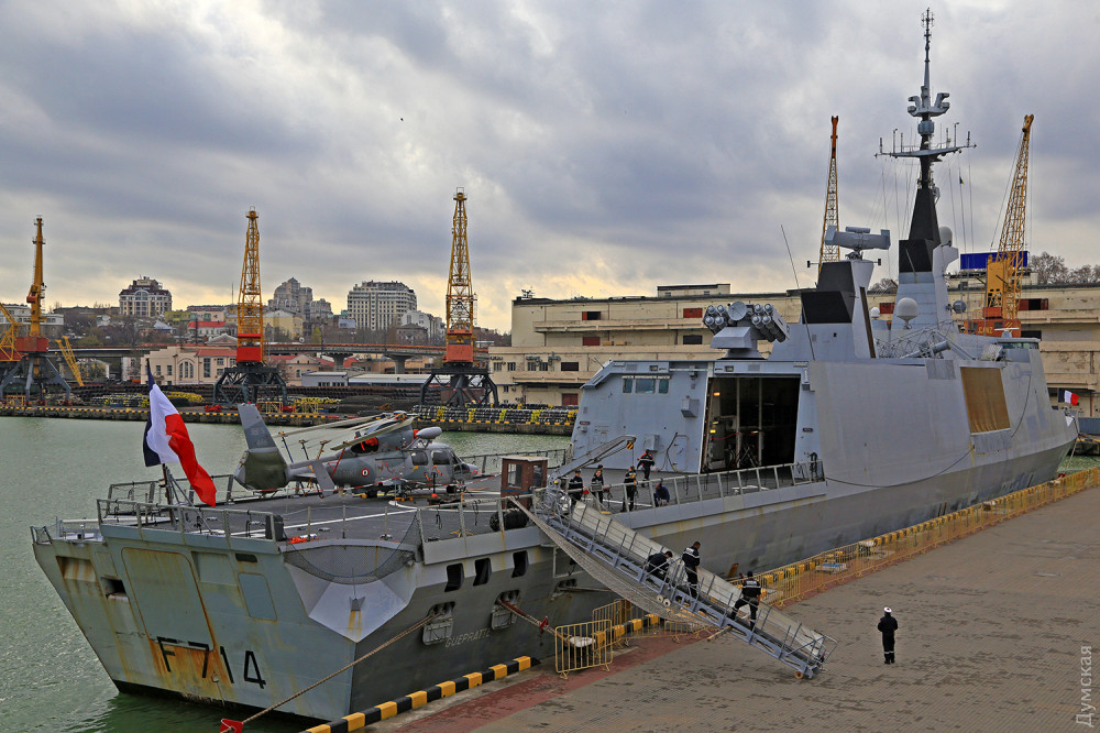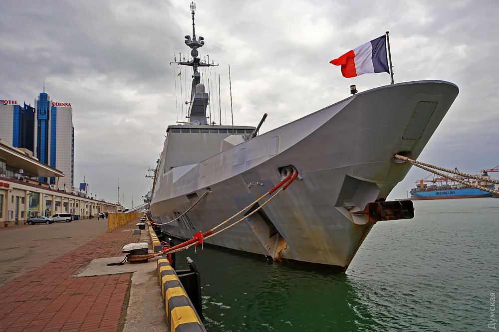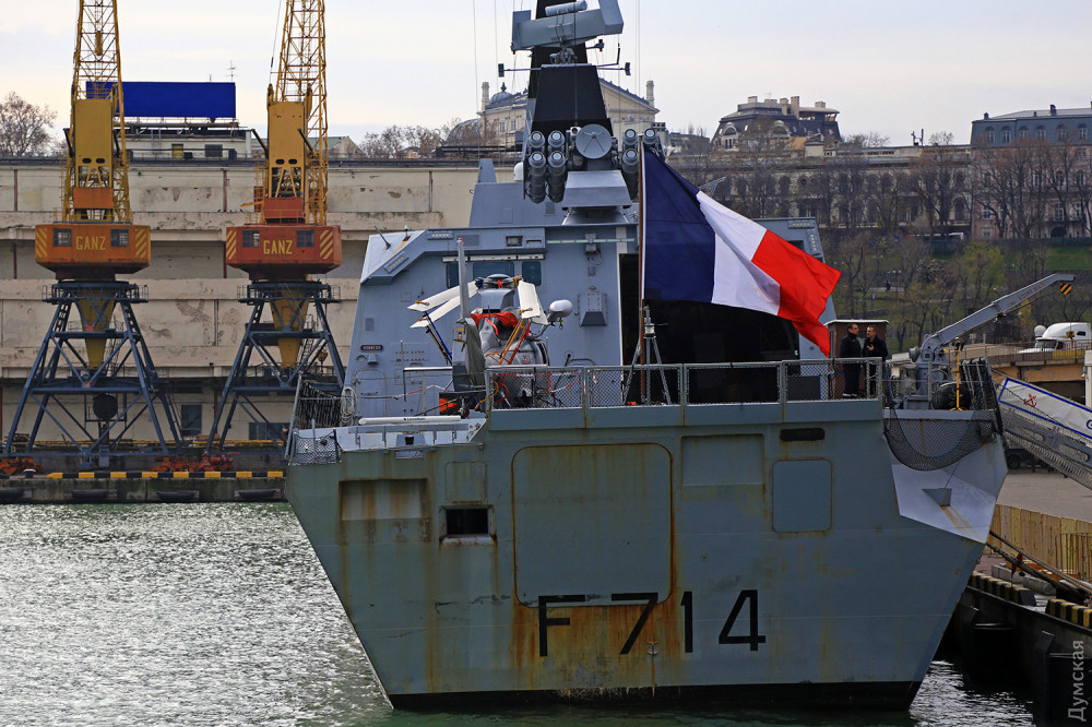 Надо отдать должное французам: они с самого начала российской агрессии неизменно поддерживали Украину. Фрегат F710 La Fayette, зашедший в Одесский порт в марте 2015 года, стал первым кораблем НАТО, посетившим Украину после начала войны. Наш нынешний гость F714 «Гепрат» — систершип «Лафайета», последний, пятый фрегат этого типа.