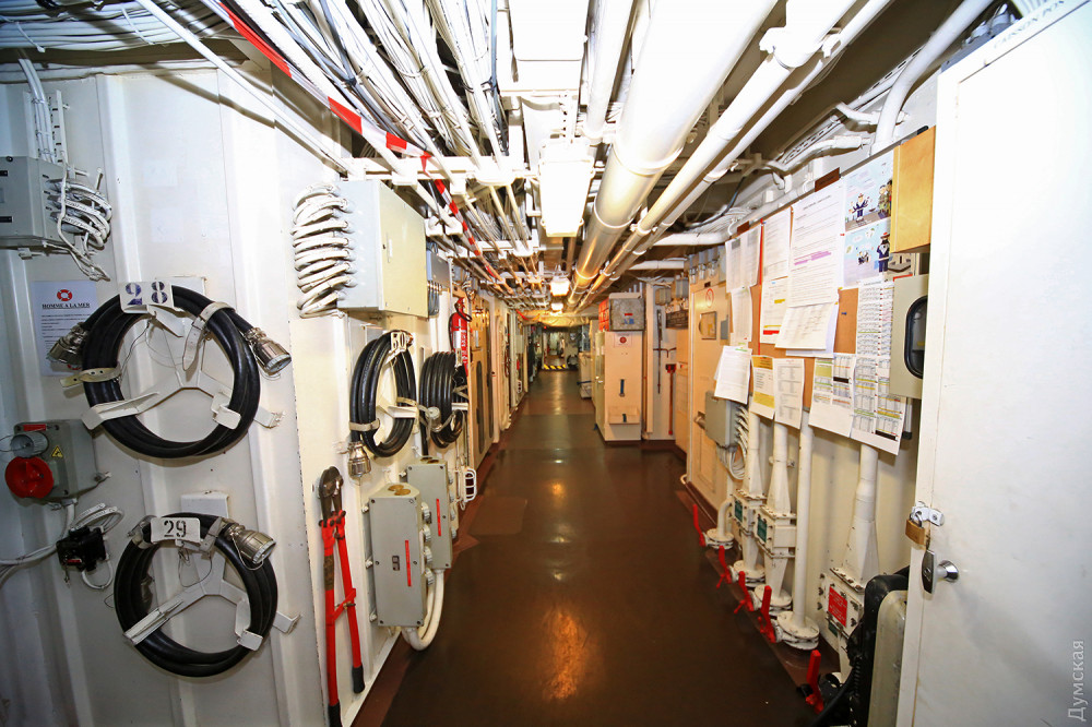 Надо сказать, условиям, созданными для экипажа на «Гепрате», могут позавидовать не только украинские, но и американские моряки. Скажем, коридоры французского фрегата значительно шире и удобнее для передвижения, чем на эсминце ВМС США. А в машинном отделении необычно тихо — говорят, что над устранением шума работают специальные устройства.