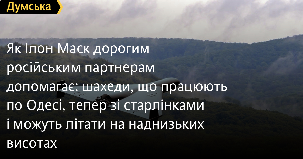 Як Ілон Маск дорогим російським партнерам допомагає: шахеди, що працюють по Одесі, тепер зі старлінками і можуть літати на наднизьких висотахЧергову зміну тактики повітряних нальотів на Одесу фіксують військові фахівці. Як пише військовий оглядач «Думської» Олексій Сухой, в останні кілька днів ворожі безпілотники на шляху до нашого міста летять дуже низько — в декількох десятках метрів над поверхнею. Це ускладнює їх виявлення в морі, а значить, впливає на швидкість розгортання сил протиповітряної оборони. Мобільні групи часто просто не встигають вчасно зреагувати і висунутися на потрібні рубежі перехоплення. Український фахівець у галузі військових радіотехнологій Сергій Бескрестний з позивним Флеш говорить про пошук нової тактики: «У нас є технологічні рішення, і ми будемо діяти, але поки я прошу виставляти віддалені пости візуального і звукового спостереження і бути готовими зустрічати гостей мобільними і стаціонарними групами прикриття. Навіть якщо «Віраж» («Віраж-планшет» — автоматизована система збору, обробки, відображення та аналізу інформації про повітряну обстановку, — Ред.) та інші системи мовчать», — зазначив радник Верховного головнокомандувача. Читайте також Шахеди стають небезпечнішими: несуть ракети, міни і «касети», атакують мобільні групи і уникають дронів-перехоплювачів Ще однією неприємністю для Збройних сил стала нова модифікація безпілотників, оснащена так званим швидким «старлінком» (привіт Ілону Маску). За його допомогою оператор може в режимі реального часу керувати «шахедом», щоб він летів на малій висоті до 50 метрів, огинаючи рельєф місцевості. «Можна сказати, що ворог знову запозичує наш досвід, впроваджуючи наші напрацювання, які ми використовуємо вже близько трьох років, — вважає Олексій Сухой. – «Старлінки» вперше почали застосовуватися на морських дронах, які в 2023-2024 роках атакували кораблі Чорноморського флоту росії. Пізніше ця схема управління перекочувала на повітряні дрони, що атакують цілі в глибині РФ – за кілька тисяч кілометрів від кордонів України. Старлінкі були доступні українцям, але до сьогоднішнього дня ворог не міг їх отримати. Зараз ситуація змінилася — антени швидкого мобільного зв'язку почали надходити в РФ, можливо через треті-четверті руки, це величезна діра в американських санкціях». Треба розуміти, що політ на дуже низькій висоті (до 50 метрів) дає багато переваг: ціль практично не видна на радіолокаторах, що створює серйозні проблеми для її перехоплення ППО. Однак таке управління пов'язане з великим ризиком: грубо кажучи, не всі долітають. Справа в тому, що в процес управління вклинюється велика затримка проходження сигналу через супутник. Оператор, керуючи дроном, отримує сигнал з відеокамери шахеда через кілька секунд. При польоті зі швидкістю 200 кілометрів на годину (55 метрів на секунду) і висоті 50 метрів це критично достатньо однієї секунди неуважності, щоб дрон врізався в землю. «Тактика наднизьких польотів стала відповіддю ворога на застосування Україною контрдронів, вони ж дрони-перехоплювачі. Можна згадати, що, тікаючи від вогню наших мобільних груп, шахеди намагалися літати якомога вище бувало, піднімалися на висоту 2-3 кілометри. Але після вдалого застосування перехоплювачів (наприклад, типу «Стінг») ворог перейшов на малі висоти. Це цілком очі
