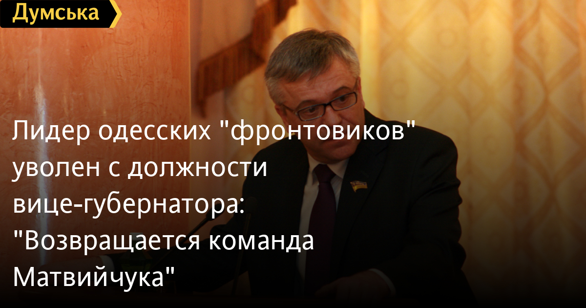 Лидер фракции «Фронта перемен» в Одесском горсовете Александр Остапенко уволен с должности вице-губернатора — начальника аппарата облгосадминистрации.