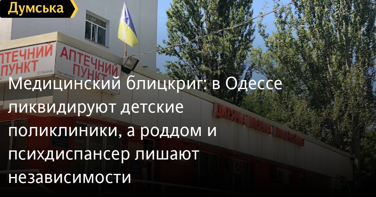 Медицинский блицкриг: в Одессе ликвидируют детские поликлиники, а роддом и психдиспансер лишают независимостиОдесский горсовет готовится к масштабной «зачистке» юридических лиц в сфере здравоохранения. На завтрашнюю сессию вынесли пакет проектов решений, которые фактически перекраивают медицинскую карту города. Если коротко: самостоятельных детских поликлиник в Одессе больше не будет — их «вольют» во взрослые центры первичной помощи. РЕЗАТЬ ПО ЖИВОМУ Официально это называют созданием «состоятельной сети» и завершающим этапом общегосударственной медицинской реформы. Одесса — один из последних городов Украины, где до сих пор сохранялась старая структура, и теперь мэрия пытается наверстать упущенное ускоренными темпами. Директор департамента здравоохранения Елена Колоденко уверяет, что город тратит слишком много денег на «содержание административного аппарата и вспомогательные сервисы». По ее словам, реформа позволит сэкономить бюджету минимум 300 миллионов гривен, которые сейчас «съедает» бюрократия. «Наши поликлиники порядка 90% заработанных средств тратят на зарплаты собственных сотрудников, что не дает возможности ни приобретать новое оборудование, ни в должной мере закупать препараты», — говорит чиновница. Стратегический смысл этой «хирургии» прост: старая система Семашко, где все якобы бесплатно, но на деле оплачивается из кармана пациента, окончательно изжила себя еще 30 лет назад. У государства банально нет ресурсов содержать бесконечные койко-места и раздутые штаты. Мы переходим на принцип «деньги ходят за пациентом» — клиники будут получать средства только за реальные услуги. Но чтобы НСЗУ открыла кошелек, учреждение должно соответствовать жестким стандартам. Именно ради этого соответствия и проводится объединение. Городу же это выгодно вдвойне: помимо сохранения финансирования, Одесса радикально сокращает расходы на содержание избыточного админперсонала. Схема объединения выглядит как масштабный медицинский пазл. Городская клиническая больница №10 на Черемушках поглотит горбольницу №5 и консультативно-диагностический центр №20. Городская клиническая больница №11 на Слободке станет мощным кластером, присоединив городской психдиспансер, Центр борьбы со СПИДом и Инфекционку. Самая необычная метаморфоза ждет детскую больницу №3: в ее состав войдут роддом №5 и диагностические центры №6 и №29. В первичном звене детские поликлиники окончательно теряют самостоятельность. ЦПМСП №2 (пер. Обсерваторный, 8) поглощает детские поликлиники №3 и №4 ЦПМСП №3 (Фонтанская дорога, 30/32) забирает детскую поликлинику №6. ЦПМСП №4 (ул. Левитана, 62) присоединяет детский центр имени Резника. ЦПМСП №5 (ул. Академика Заболотного, 59б) забирает детскую поликлинику №2. ЦПМСП №16 (ул. Ивана и Юрия Лип, 1) объединяется с детскими поликлиниками №5 и №7. ЦПМСП №18 (ул. Героев обороны Одессы, 52) поглощает детскую поликлинику №1. ПАНИКА В КОРИДОРАХ И ЦЕННИК НА «ЗРАДУ» Главная проблема нынешнего момента — тотальный провал коммуникации со стороны мэрии. Чиновники не удосужились внятно объяснить ни депутатам, ни медикам, ни, тем более, пациентам, что именно изменится и ради чего всё затевается. Никто не говорит о бонусах: например, о том, что статус «кластерной» больницы дает повышающие коэффициенты от НСЗУ, а значит — реальную возмож