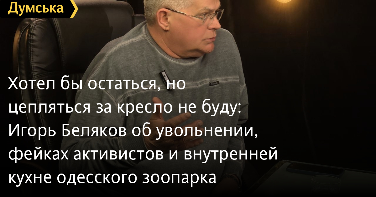 «Хотел бы остаться, но цепляться за кресло не буду»: Игорь Беляков об увольнении, фейках активистов и внутренней кухне одесского зоопаркаУвольнение директора одесского зоопарка Игоря Белякова, который возглавлял его 13 лет, стало настоящей информационной бомбой. Пока город подписывал петицию в его защиту, сам уже экс-директор в эксклюзивном интервью «Думской» прояснил ситуацию. В этом разговоре — все: от «политического» подтекста и организованной травли до закулисья работы с дикими животными. Беляков откровенно рассказал, почему сбежал павиан-бабник Жорик, как пришлось принимать решение о ликвидации леопарда, почему бюджет в 35 миллионов — это катастрофа, и каково это — целоваться с волками, зная, что один неверный шаг может стоить жизни. ХОТЕЛ БЫ ОСТАТЬСЯ, НО ЦЕПЛЯТЬСЯ ЗА КРЕСЛО Я НЕ БУДУ «Думская». Игорь Владимирович, общественность узнала о вашем увольнении из вашего поста в Facebook 15 апреля. А когда об этом узнали вы? Игорь Беляков. Такие разговоры ходили последний месяц, до меня доходили слухи, поэтому, конечно, я узнал об этом не в последний момент. Про окончательное решение мне стало известно на днях. 15 апреля я позвонил в мэрию, уточнил, и мне подтвердили, что контракт со мной не продлен. «Д». Нам в мэрии подтвердили, что контракт завершен, в связи с чем вы написали заявление по собственному желанию. И.Б. Это неправда, я не писал заявления на увольнение. «Д». Кто будет руководить зверинцем вместо вас? И.Б. Это мой заместитель Александра Швец. «Д». Можете характеризовать ее? И.Б. На мой взгляд, это довольно грамотная женщина, толковый сотрудник, она по образованию ветеринар, хорошо относится к животным, я лично против нее ничего не имею. «Д». А с каких пор она ваш заместитель? И.Б. Ее назначили в начале марта. «Д». Это был ваш выбор? И.Б. Нет, ее кандидатуру спустили сверху. Ранее она работала в биопарке. «Д». Последние полгода на вас оказывалось серьезное давление, и в сухом остатке вашим оппонентам удалось добиться своего — вы уволены. Тем не менее, вы отдали зоопарку почти 40 лет жизни. Неужели вы просто смиритесь? И.Б. Какой будет воля Божья, так тому и быть. Конечно, я хотел бы остаться директором зоопарка, потому что действительно отдал ему всю жизнь. Однако биться в истериках и цепляться за кресло я не собираюсь. По закону назначение и увольнение директора коммунального предприятия – прерогатива городской власти, она решает, кто возглавляет зоопарк. «Д». У нас в городе сейчас власть о двух головах: есть мэрия и городская военная администрация. Вы не обращались за разъяснениями к последней? Может там не знают о вашей ситуации. И.Б. Нет, я не обращался туда и никого не информировал. ЭТИ ЛЮДИ ЛЮБОЕ БЕЛОЕ НАЗЫВАЮТ ЧЕРНЫМ «Д». Когда и почему, по вашему мнению, началась информационная кампания против вас? И.Б. Это началось около полугода назад и все это время сопровождалось постоянными фейками. «Д». Можете привести примеры этих фейков? И.Б. Конечно. Снимается спящий страус, накладывается трагическая музыка, и пишется, что сегодня в зоопарке умер страус. Или снимается антилопа, стоящая под дождем, причем снимается в таком ракурсе, что у нее нет доступа в крытый вольер, и она вынуждена страдать. Или недавний случай: умерла львица в возрасте 23 лет. Писали, что мы ее «довели». А на самом деле в дикой природе львы живут 15–16 лет, и то, что она дожила до тако