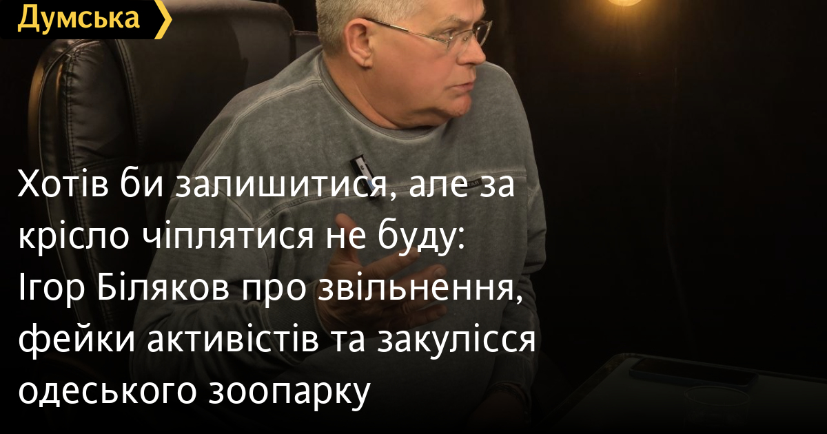 «Хотів би залишитися, але за крісло чіплятися не буду»: Ігор Біляков про звільнення, фейки активістів та закулісся одеського зоопаркуЗвільнення директора одеського зоопарку Ігоря Білякова, який очолював його 13 років, стало справжньою інформаційною бомбою. Поки місто підписувало петицію на його захист, сам уже ексдиректор в ексклюзивному інтервю «Думській» прояснив ситуацію. У цій розмові — все: від «політичного» підтексту та організованого цькування до закулісся роботи з дикими тваринами. Біляков відверто розповів, чому втік павіан-бабій Жорик, як довелося приймати рішення про ліквідацію леопарда, чому бюджет у 35 мільйонів — це катастрофа, і як це — цілуватися з вовками, знаючи, що один невірний крок може коштувати життя. ХОТІВ БИ ЗАЛИШИТИСЯ, АЛЕ ЧІПЛЯТИСЯ ЗА КРІСЛО Я НЕ БУДУ «Думська». Ігоре Володимировичу, громадськість дізналася про ваше звільнення з вашого допису у Facebook 15 квітня. А коли про це дізналися ви? Ігор Бєляков. Такі розмови ходили останній місяць, до мене доходили чутки, тому, звичайно, я дізнався про це не в останній момент. Про остаточне рішення мені стало відомо днями. 15 квітня я зателефонував до мерії, уточнив, і мені підтвердили, що контракт зі мною не продовжено. «Д». Нам у мерії підтвердили, що контракт завершено, у зв'язку з чим ви написали заяву за власним бажанням. І.Б. Це неправда, я не писав заяви про звільнення. «Д». Хто керуватиме звіринцем замість вас? І.Б. Це моя заступниця Олександра Швець. «Д». Можете схарактеризувати її? І.Б. На мій погляд, це досить грамотна жінка, тямуща співробітниця, вона за освітою ветеринар, добре ставиться до тварин, я особисто нічого проти неї не маю. «Д». А з яких пір вона є вашим заступником? І.Б. Її призначили на початку березня. «Д». Це був ваш вибір? І.Б. Ні, її кандидатуру спустили зверху. Раніше вона працювала в біопарку. «Д». Останні пів року на вас чинився серйозний тиск, і в підсумку вашим опонентам вдалося домогтися свого — вас звільнили. Проте ви віддали зоопарку майже 40 років життя. Невже ви просто змиритеся? І.Б. Яка буде воля Божа, так тому й бути. Звичайно, я хотів би залишитися директором зоопарку, тому що дійсно віддав йому все життя. Однак битися в істериках і чіплятися за крісло я не збираюся. Згідно із законом, призначення та звільнення директора комунального підприємства — прерогатива міської влади, вона вирішує, хто очолює зоопарк. «Д». У нас у місті зараз влада з двома головами: є мерія та міська військова адміністрація. Ви не зверталися за роз'ясненнями до останньої? Може, там не знають про вашу ситуацію. І.Б. Ні, я не звертався туди та нікого не інформував. ЦІ ЛЮДИ БУДЬ-ЯКЕ БІЛЕ НАЗИВАЮТЬ ЧОРНИМ «Д». Коли й чому, на вашу думку, розпочалася інформаційна кампанія проти вас? І.Б. Це почалося близько пів року тому і весь цей час супроводжувалося постійними фейками. «Д». Можете навести приклади цих фейків? І.Б. Звичайно. Знімається сплячий страус, накладається трагічна музика, і пишеться, що сьогодні в зоопарку помер страус. Або знімається антилопа, що стоїть під дощем, причому знімається в такому ракурсі, що у неї немає доступу до критого вольєра, і вона змушена страждати. Або недавній випадок: померла левиця у віці 23 років. Писали, що ми її «довели». А насправді в дикій природі леви живуть 15-16 років, і те, що вона дожила до такого похилого віку — це наш успіх і свідчення належног