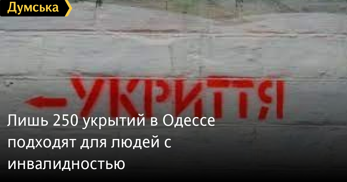 Лишь 250 укрытий в Одессе подходят для людей с инвалидностьюЛишь 250 укрытий в Одессе оборудованы таким образом, чтобы ими могли воспользоваться маломобильные люди с инвалидностью. Об этом шла речь на встрече в одесской мэрии с региональным представителем Правительственного уполномоченного по правам лиц с инвалидностью Олегом Соколовым, на которой обсуждали создание в городе доступной среды. Так, сейчас люди с инвалидностью могут воспользоваться лишь 250 укрытиями простейшего типа. Что касается убежищ, в которых сейчас проводят капитальный ремонт, то их планируют оборудовать элементами безбарьерной среды (пандусы, широкие дверные проемы и т.д). Всего, по данным мэрии, сегодня в Одессе насчитывается 673 укрытия различных типов, в которых можно спрятаться во время воздушных тревог. СМЕРТЬ РОССИЙСКИМ ОККУПАНТАМ! Заметили ошибку? Выделяйте слова с ошибкой и нажимайте control-enter |
