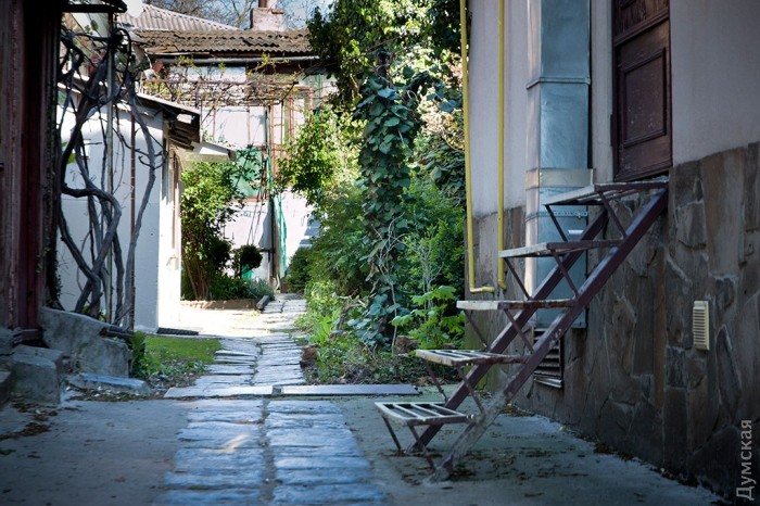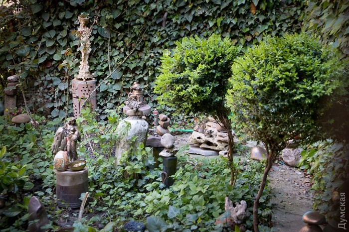 Достоин внимания и двор на Раскидайловской, недалеко от Староконного рынка. Там тоже постаралась женщина с дизайнерскими талантами — парикмахер Александра Ралдугина. Увитые плющом стены, какие-то цветочки, а между ними – статуэтки. А надо всем этим великолепием развевается украинский флаг: автор благоустройства еще и патриот своей страны.