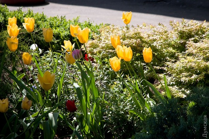 Проблемы у озеленителей одинаковые. Если двор не закрывается или проходной, садики подвергаются набегам вандалов. Хорошо еще если это «рыцари», желающие осчастливить своих прекрасных дам ворованными тюльпанами и розами. Но частенько, увы, красоту разоряют просто так, из хулиганских побуждений. «Топчут цветы, ломают молодые деревца, бросают бутылки и окурки. Нелюди, словом», — сетует на гопников садовод-любитель с улицы Юрия Олеши Людмила.