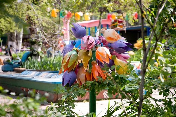 Взять, например, дворик на Еврейской, напротив синагоги. Лет десять назад усилиями местной жительницы Татьяны Демидовой, бывшего медработника, он превратился из обычного угрюмого «колодца» в таинственный лес, населенный сказочными персонажами. Здесь хорошо и детям, и взрослым, и кошкам, которые, пробираясь сквозь чащу, воображают себя тиграми и пантерами.