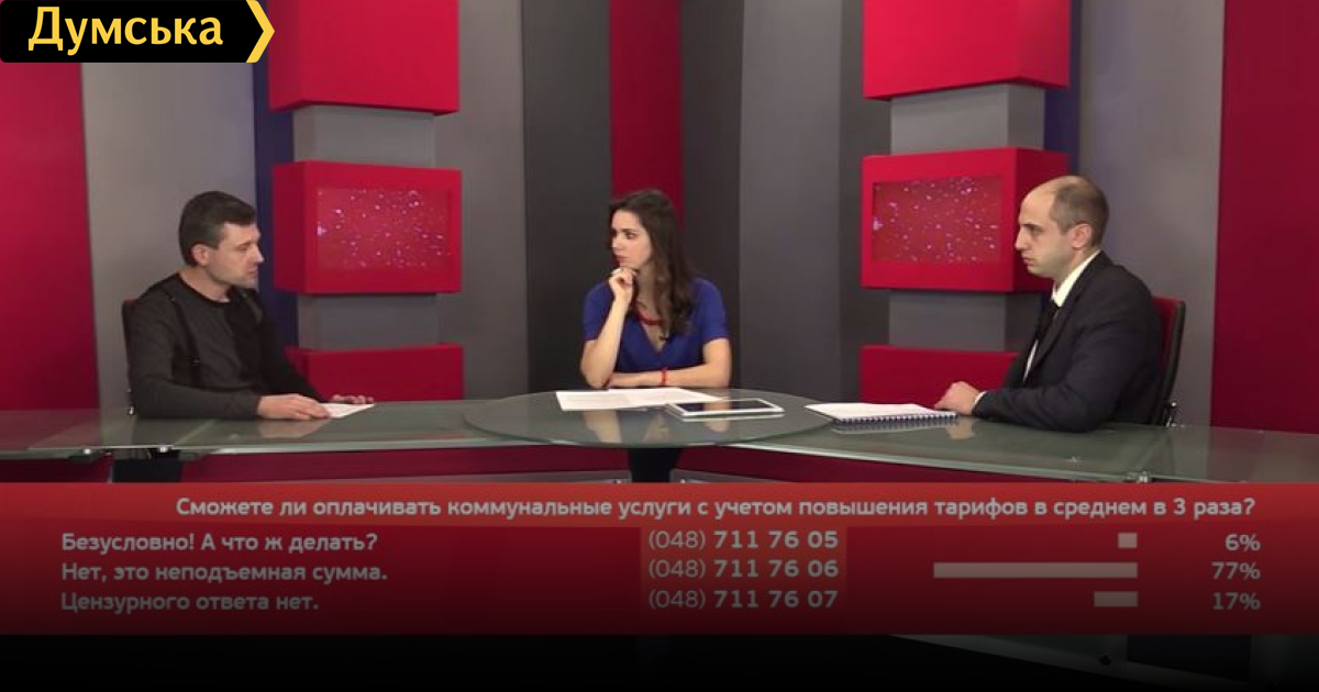 Поднятие тарифов: способ выжить или поживиться? «Одессаоблэнерго» хочет поднять тариф на электроэнергию с 1 марта на 40 процентов. Газ подорожает в 7 раз. В студии Дмитрий Радулов, директор департамента экономического развития Одесского горсовета и Александр Шикун, активист СМЕРТЬ РОСІЙСЬКИМ ОКУПАНТАМ! Помітили помилку? Виділяйте слова з помилкою та натискайте control-enter