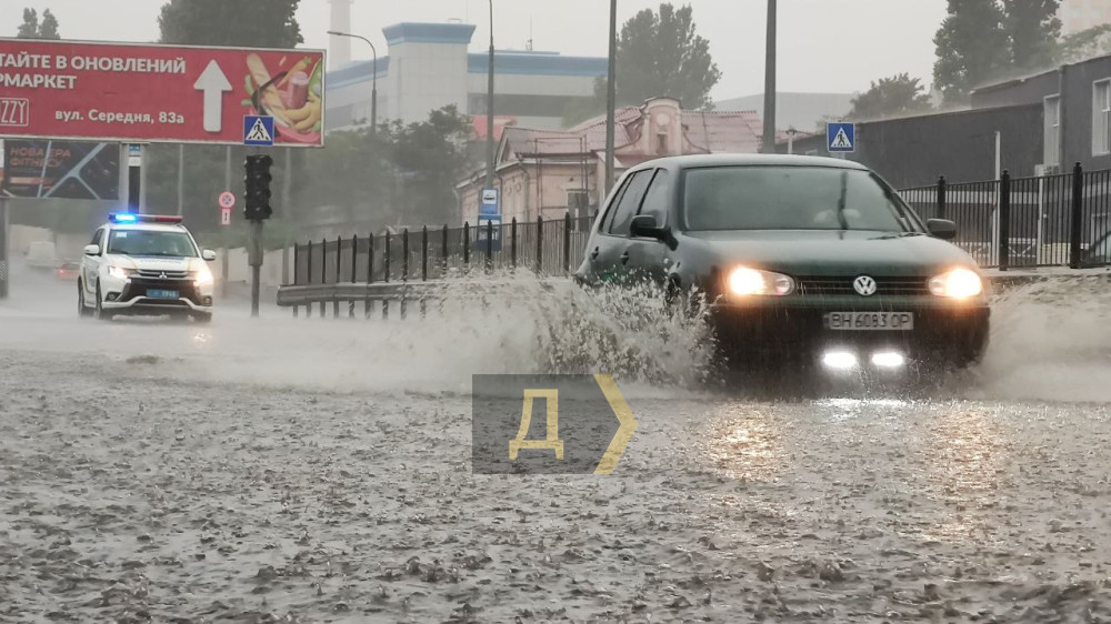 Очередной залповый ливень, обрушившийся на Одессу, сделал невозможным проезд по Газовому переулку, части Балковской улицы, улице Ильфа и Петрова, а также проспектам Небесной Сотни и Глушко.