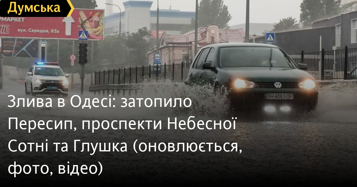 Злива в Одесі: затопило Пересип, проспекти Небесної Сотні та Глушка (оновлюється, фото, відео)Чергова залпова злива, що обрушилася на Одесу, унеможливила проїзд по Газовому провулку, частині Балківської вулиці, вулиці Ільфа та Петрова, а також проспектам Небесної Сотні та Глушка. Як повідомляють кореспонденти «Думської», на підтоплених ділянках стоять автомобілі, чиї двигуни залило водою. Тимчасово припинено рух трамвайними маршрутами №20 («очеретовим») та 15. Тролейбус №8 ходить до Хімічної, трамваї №5 та 28 – до Тираспольської площі. Ліквідацією наслідків негоди займаються 315 співробітників КП «Міські дороги» та 26 одиниць техніки. Зокрема, комунальники знімають ґрати зливової каналізації, щоб прискорити сходження води. Дощ може тривати до кінця дня. ОНОВЛЕНО О 16:02. Трамвайні маршрути №5 та 28 відновили роботу в повному обсязі. Крім того, знову можна проїхати проспектом Небесної Сотні. ОНОВЛЕНО О 16:51. Рух трамвайного маршруту №15 відновлено в повному обсязі. ОНОВЛЕНО О 17:41. Трамвай №12 знову пішов. Крім того, відновлено рух машин усіма магістральними вулицями. Трохи сповільнений проїзд Хімічною на розі з Промисловою та вулицею Отамана Чепіги на ділянці від Церковної до Одарія.