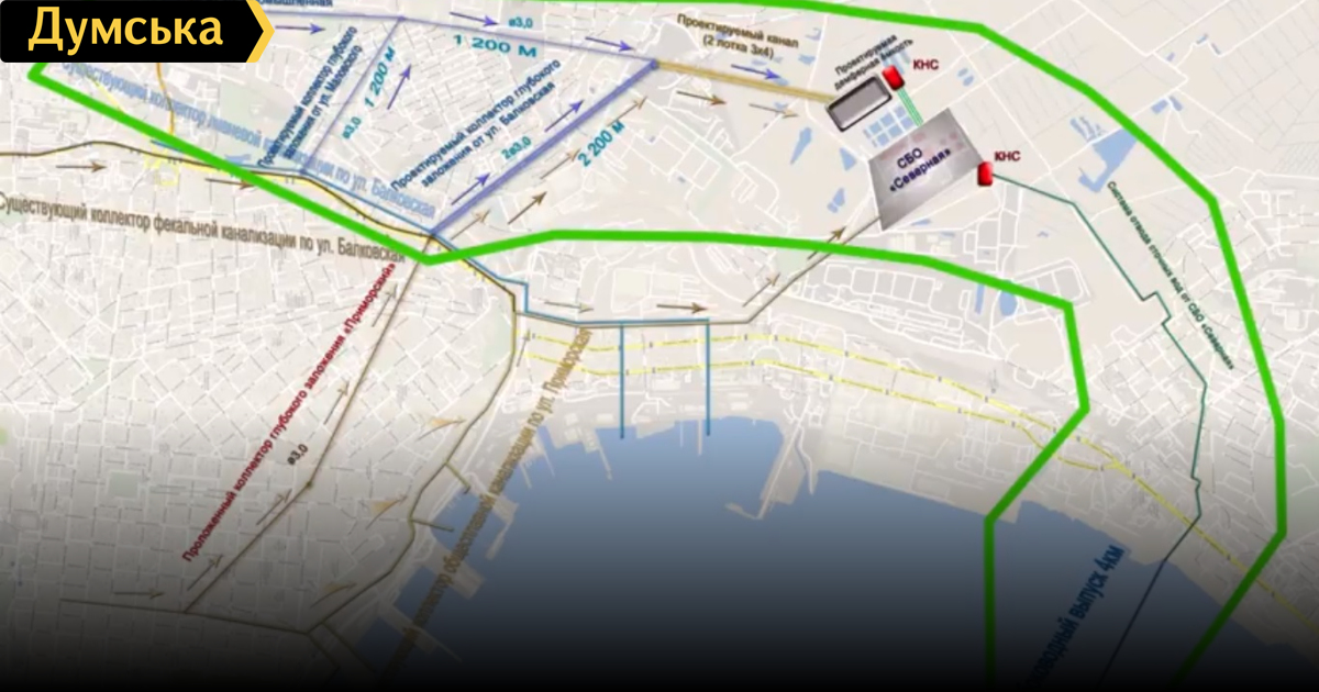 Так, согласно презентации, стоки Приморского коллектора глубокого заложения (проходит через центр) предлагается направить на СБО «Северная», для чего необходимо продлить коллектор и провести закрытый канал к очистным сооружениям. Кроме того, планируется построить демпферный пруд объемом 72 тыс. кубометров и канализационную насосную станцию, а также тоннель-коллектор на Промышленной улице с перехватом ливневых стоков.