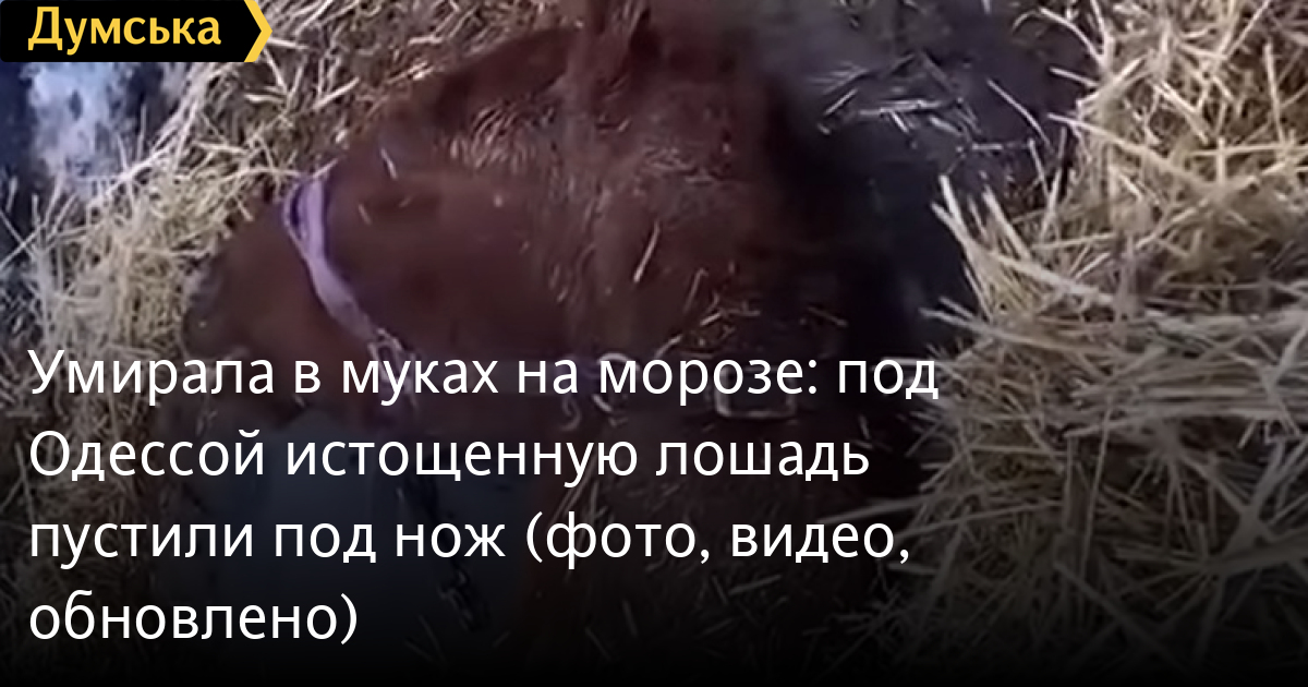 Умирала в муках на морозе: под Одессой истощенную лошадь пустили под нож (фото, видео, обновлено)Истощенную лошадь зарезали под Одессой сразу после того, как зоозащитники забили тревогу в интернете. Последние несколько дней социальные сети содрогались от кадров, сделанных очевидцами на станции Усатово: на морозе, под ледяным дождем, на земле лежала лошадь. Животное было настолько обессилено, что не могло подняться. Местные жители рассказывают, что до 2022 года лошадей содержали в «относительно товарном» виде только ради заработка на прокате. Когда бизнес заглох, животные превратились в обузу. «С 2021 года там уже умерло приблизительно три коня. Одного коня сами же кони сделали калекой — выбили глаз, и по телу ужас. Он прожил не долго. Все время жили у них в чуть огороженной площадке у двора. Площадка постоянно потопала в фекалиях. В конюшню не заводили ни зимой, ни летом. Стояли доски, а не кони. Грязные и худые. Кони не старые. Сын его ветеринар, так что все замнется», — делятся соседи, которые годами наблюдали за этой картиной. По словам свидетелей, животных кормили одним сеном даже летом. В прошлом году им «повезло» — коней перевели на участок с травой, где они немного отъелись. Осенью 2024-го туда прилетела ракета, и животные получили ранения. Однако даже это не заставило владельцев проявить милосердие: всю текущую зиму раненые и больные кони провели под открытым небом. Когда ситуация с умирающим конем получила огласку, на место выехали волонтеры. Зоозащитница Яна Титаренко сообщила: как только информация разошлась в сети, владельцы просто зарезали животное. «Животное просто зарезали, а наша полиция снова не увидела состава преступления! И это при том, что неделю назад на этот адрес уже вызывали 102», — констатирует Титаренко. Оказалось, что хозяйка фермы является членом Кинологического союза Украины и занимается разведением собак. «Думская» обратилась в полицию за комментарием. ОБНОВЛЕНО 11:55 Как сообщили в Нацполиции, несколько дней назад правоохранители получили информацию о животном, которое якобы ненадлежащим образом содержатся в одном из частных домохозяйств в селе Усатово. Следователи внесли в Единый реестр досудебных расследований сведения по ч. 1 ст. 299 (жестокое обращение с животными) Уголовного кодекса Украины. СМЕРТЬ РОССИЙСКИМ ОККУПАНТАМ! Заметили ошибку? Выделяйте слова с ошибкой и нажимайте control-enter |