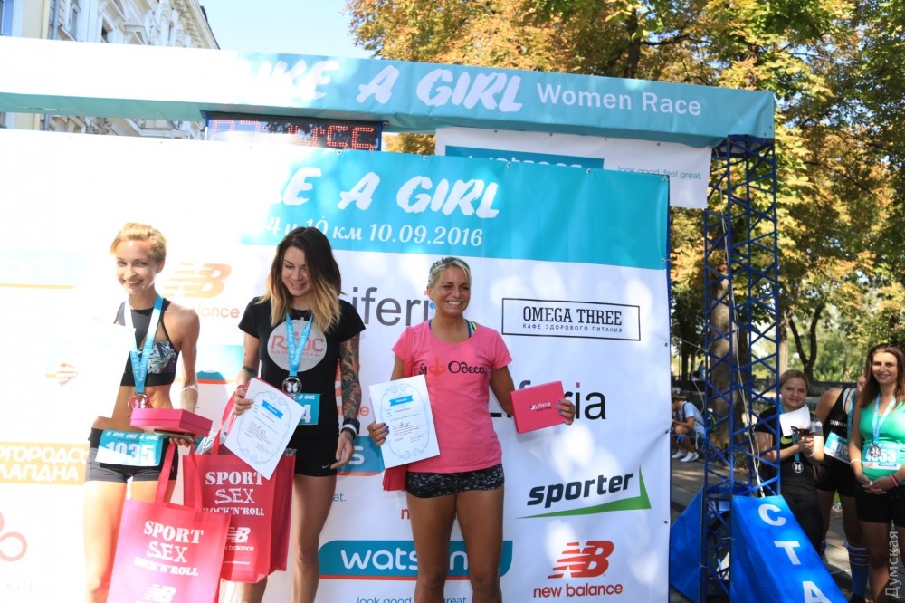 В рамках Дня спорта от памятника Дюку стартовал женский забег. Эта акция проводится уже второй год подряд и обещает стать ежегодной. Цель — стимулирование как можно большего количества женщин к здоровому образу жизни. «Мы хотим, чтобы ежегодно все одесситки выходили на эту небольшую, доступную для всех дистанцию, чтобы все были красивы, молоды и веселы», — отметила организатор мероприятия Юлия Шуманова. В забеге участвовали больше двух сотен одесситок. Начинающие бежали четыре километра, опытные — десять. Среди бегуний было также семь девушек-полицейских во главе с опытным марафонцем Еленой Шевченко. Она провела для всех участниц коллективную разминку. В абсолютном зачете четырехкилометрового забега победила Анастасия Лебедь, а на 10 км - Валентина Полтавская. Победители и призеры определились также в трех возрастных категориях. Девушки получили призы от спонсоров мероприятия. Отдельные подарки вручили дамам, пришедшим последними. После финиша и награждения среди участниц провели конкурсы на лучшую прическу, лучший маникюр и лучший наряд. Фото — Сергей Смоленцев СМЕРТЬ РОСІЙСЬКИМ ОКУПАНТАМ! Помітили помилку? Виділяйте слова з помилкою та натискайте control-enter |
