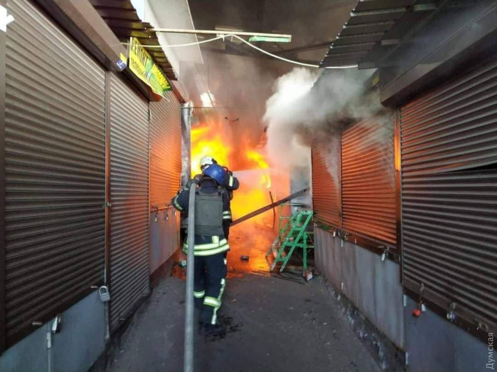 В Лисичанске спасатели ближе к вечеру смогли ликвидировать возгорание торговых павильонов рынка общей площадью 1000 кв. м.