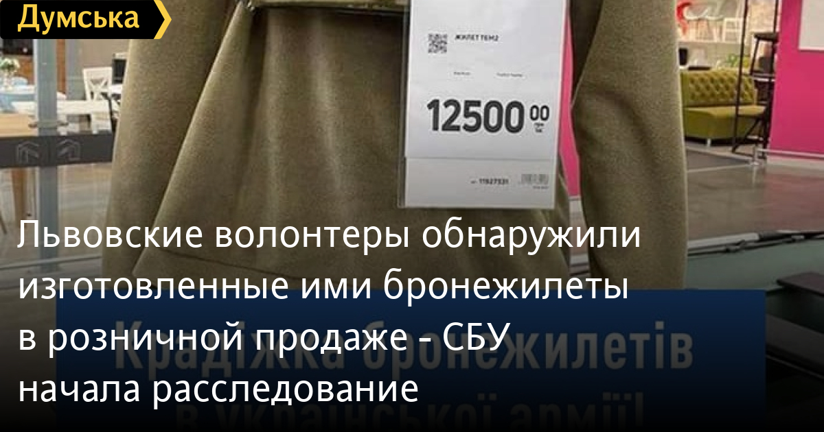 Кражу бронежилетов, изготовленных волонтерами Львовского оборонного кластера за счет добровольных пожертвований, расследует Служба безопасности Украины.