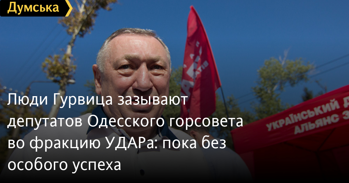 Информацию о формировании фракции «Думской» подтвердила соратник Гурвица, депутат горсовета от «Фронта перемен» Марина Багрий-Шахматова. Именно ей экс-мэр поручил вести переговоры с потенциальными «УДАРовцами».