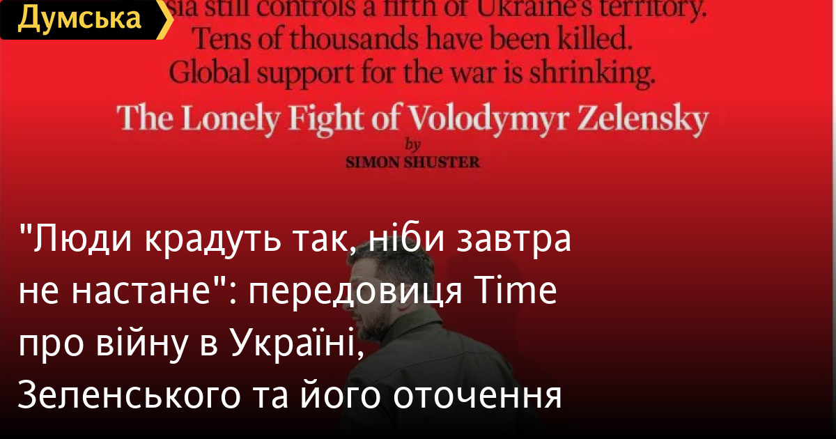 Time поїхав за президентом України та його командою до Києва після візиту до Вашингтона, сподіваючись зрозуміти, як вони відреагують на отримані сигнали, особливо на наполегливі заклики до Зеленського боротися з корупцією у власному уряді та на згасання ентузіазму до війни, якій не видно кінця.