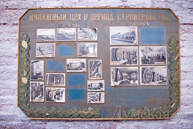 Потолок уютного холла украшен двадцатью тысячами фирменных бутылок коньячного завода в форме колокола, сквозь который льется мягкий свет. Ощущение такое, будто находишься под пенящейся морской волной. Сама экспозиция размещена в прохладных подвалах между купажным и разливочным цехами. Перемещаясь по подземным залам, посетители знакомятся с историей благородного напитка, узнают тонкости процесса его производства — как выращивается виноград, как делают бочки и как правильно выдерживать коньяк.