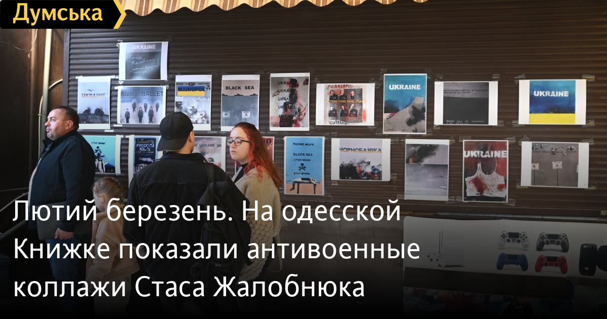 Очередная выставка антивоенного украинского искусства открылась на книжном рынке, что на Александровском бульваре. Одесский художник Стас Жалобнюк в новой серии «Лютий березень» отрабатывает личный экзистенциальный ужас, усиленный военными событиями.