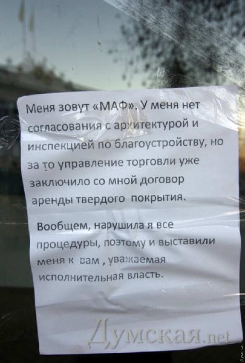 Одесская МАФия снова подает признаки жизни. После шести лет негласного моратория на новые ларьки, в городе начали появляться свежие будки. Формально все (ну или почти все) законно, фактически — система снова дает сбой: аренда стоит копейки, а посредники зарабатывают в разы больше города, да и что греха таить, эти ларьки, понатыканные повсюду, портят и так не идеальный вид пока спальных районов. Но если процесс не остановить, мы уверены, доберутся они и до побережья. Редакторка «Думской» Алия Замчинская вспоминала, какой была Одесса-будочная раньше и какой может стать в будущем. ИСТОКИ ЗЛА И ЧУДО ЦИФРОВИЗАЦИИ Понятия МАФия и МАФизация прочно закрепились в Одессе в начале 2010-х, во времена Алексея Костусева. Тогда появление ларьков и киосков стало совершенно хаотичным. Мэр пытался сдержать процесс — объявлял «мораторий», собственноручно громил отдельные точки кувалдой (что породило кучу мемов), — но безуспешно. МАФизацией занимались лично главы райадминистраций, не подконтрольные Костусеву, в частности руководитель Приморской — Иван Пастушок. Лучше стало после смены власти в 2013 году. Управление торговли возглавил Олесь Янчук, который начал наводить порядок — так, как он его понимал. Став вице-мэром, чиновник продолжил работу по сокращению числа МАФов и унификации их внешнего облика. Параллельно он прибирал этот рынок к рукам и даже сейчас, спустя годы после отставки, по всей видимости, контролирует какую-то его часть. Постепенно эта сфера становится все более прозрачной и подконтрольной. Во-первых, в Одессе появилась интерактивная карта, на которую нанесли все (по крайней мере, законные) МАФы. Тут есть исчерпывающая информация о них - адрес, площадь, тип, дата заключения договора, его срок. Во-вторых, теперь каждый предприниматель должен будет размещать на своем ларьке qr-код, который ведет на ту же карту. Мы провели специальный рейд, чтобы понять, выполняют ли коммерсанты это требование (пока не обязательное). Результат неутешителен. Промаркировано всего лишь около трети ларьков. КОГДА ПОСРЕДНИК ЗАРАБАТЫВАЕТ БОЛЬШЕ, ЧЕМ ГОРОД Депутат Петр Обухов, будучи программистом, написал скрипт, который собрал воедино всю информацию о будках в разных районах города. Благодаря этому, мы и можем судить о том, как МАФия разрасталась с годами. К примеру, есть ларек, договор на который действует до 2047 года!!! И еще немного цифр. Всего в городе 71,6 тыс. квадратных метров такой торговой площади. Это же о-го-го, подумаете вы. Но вот вам другая цифра — 70 гривен, именно столько стоит аренда квадратного метра в месяц (на самом деле, есть и другие цифры, но их меньшинство, подробности тут и тут). Всего за год набегает около 60 млн. К слову, во Львове стоимость метра в три раза выше — 200 грн. В Одессе это показатель не пересматривался с декабря 2022-го, а до того было еще вдвое меньше. То есть средняя будка в 20 квадратов приносит городу 1400 гривен в месяц. А вот в субаренду ее могут сдать в 5-10 раз дороже. То есть реальные предприниматели, те, кто торгует шаурмой, кофе и всякими мелочами, 60-80% своей платы за аренду отдают банальному посреднику. Который вовремя подсуетился и заключил договоры. МНИМЫЕ СДЕЛКИ И ПАССИВНЫЕ ПРАВООХРАНИТЕЛИ Объекты уличной торговли еще со времен Эдуарда Гурвица размещаются в Одессе по схеме «аренда твердого покрытия», и предприниматели платят суще
